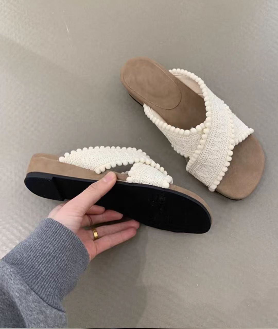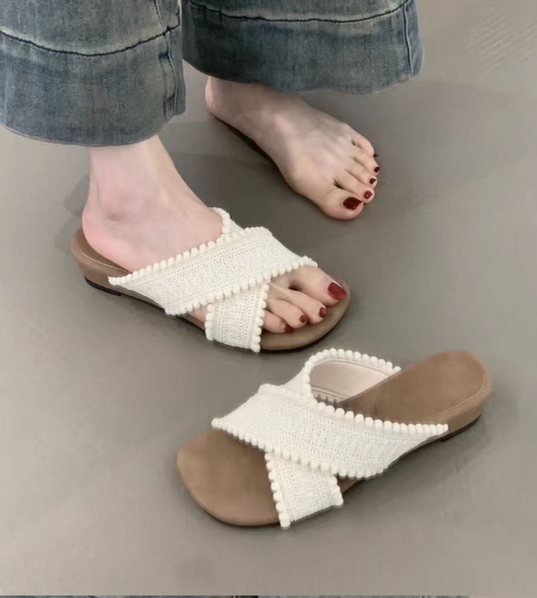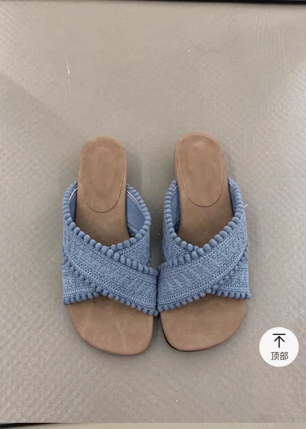 2025년 여름 신상 크로스 스트랩 린넨 두꺼운 밑창 웨지힐 게으른 여성용 비치 휴가 하프 슬리퍼스토어 가기
