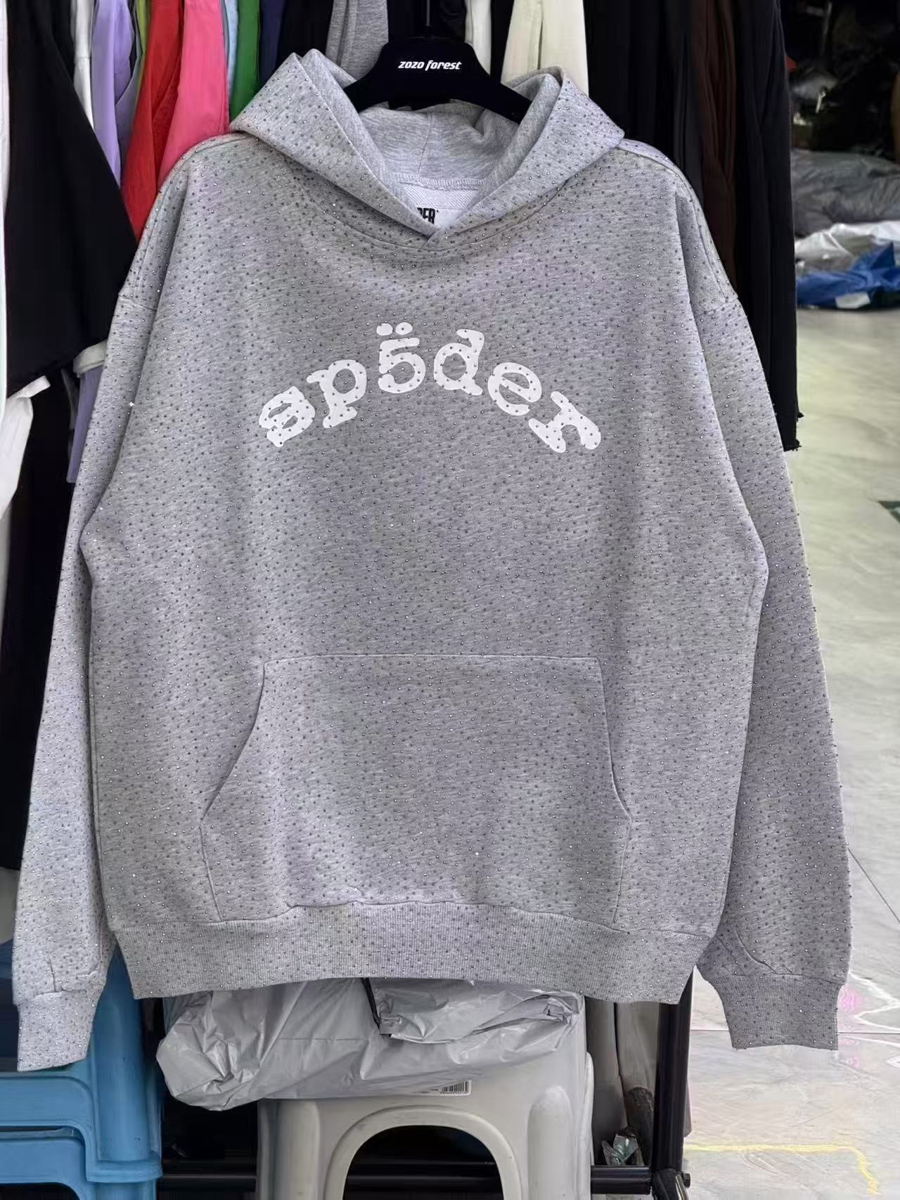 25FW 유럽 및 미국 SP5555555 후드티 트리 패턴 후드티 자수 로고 다이아몬드 스웨트셔츠 및 스웨트팬츠 세트 트렌디 브랜드스토어 가기