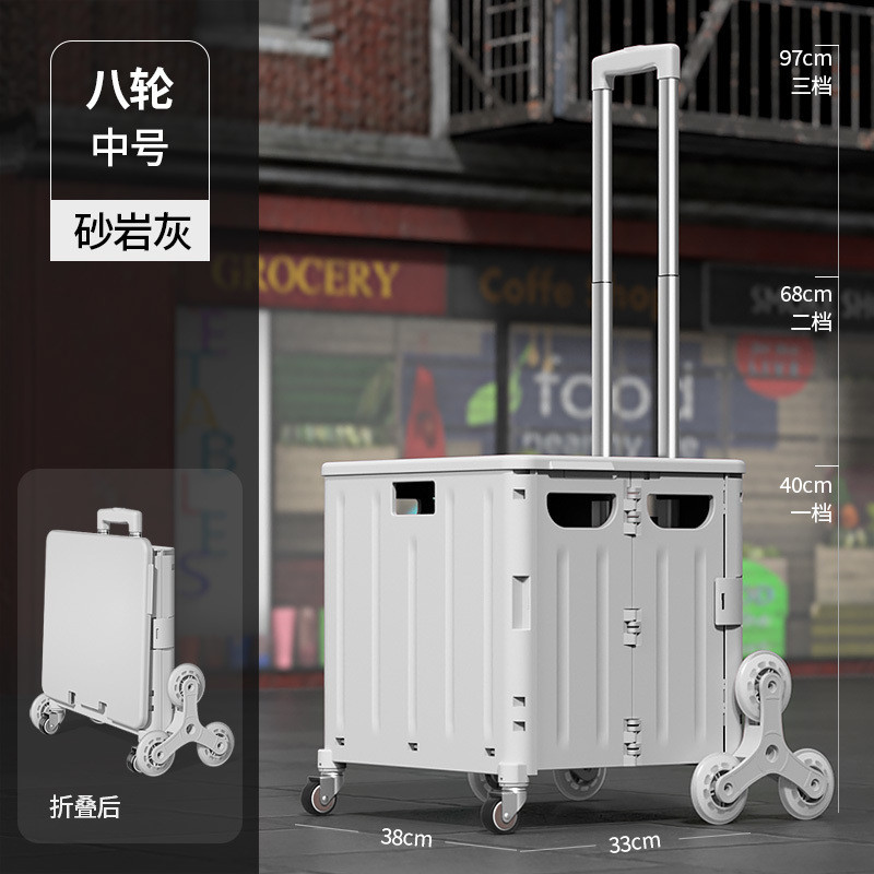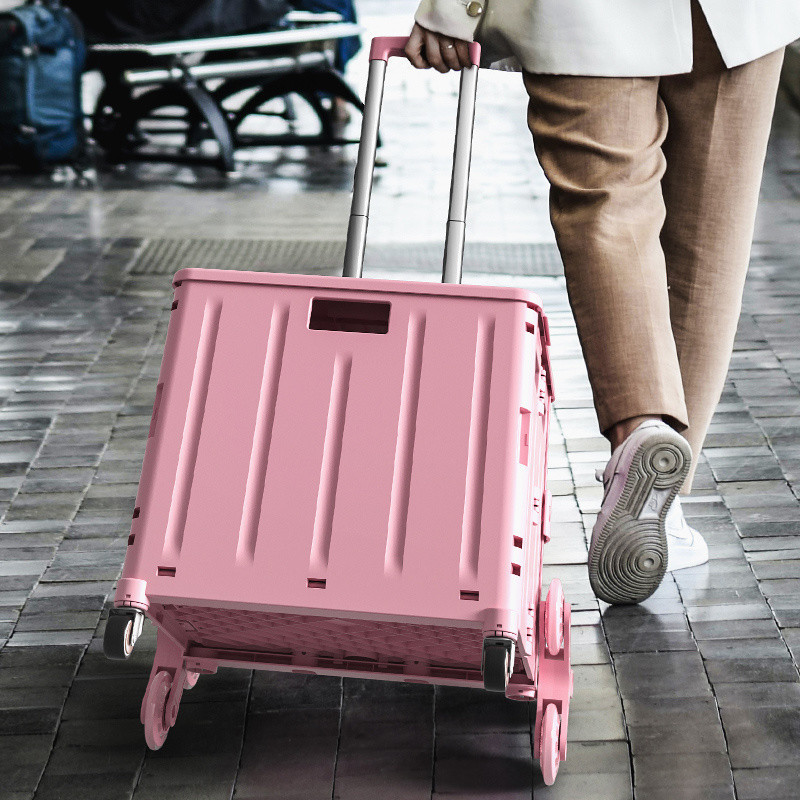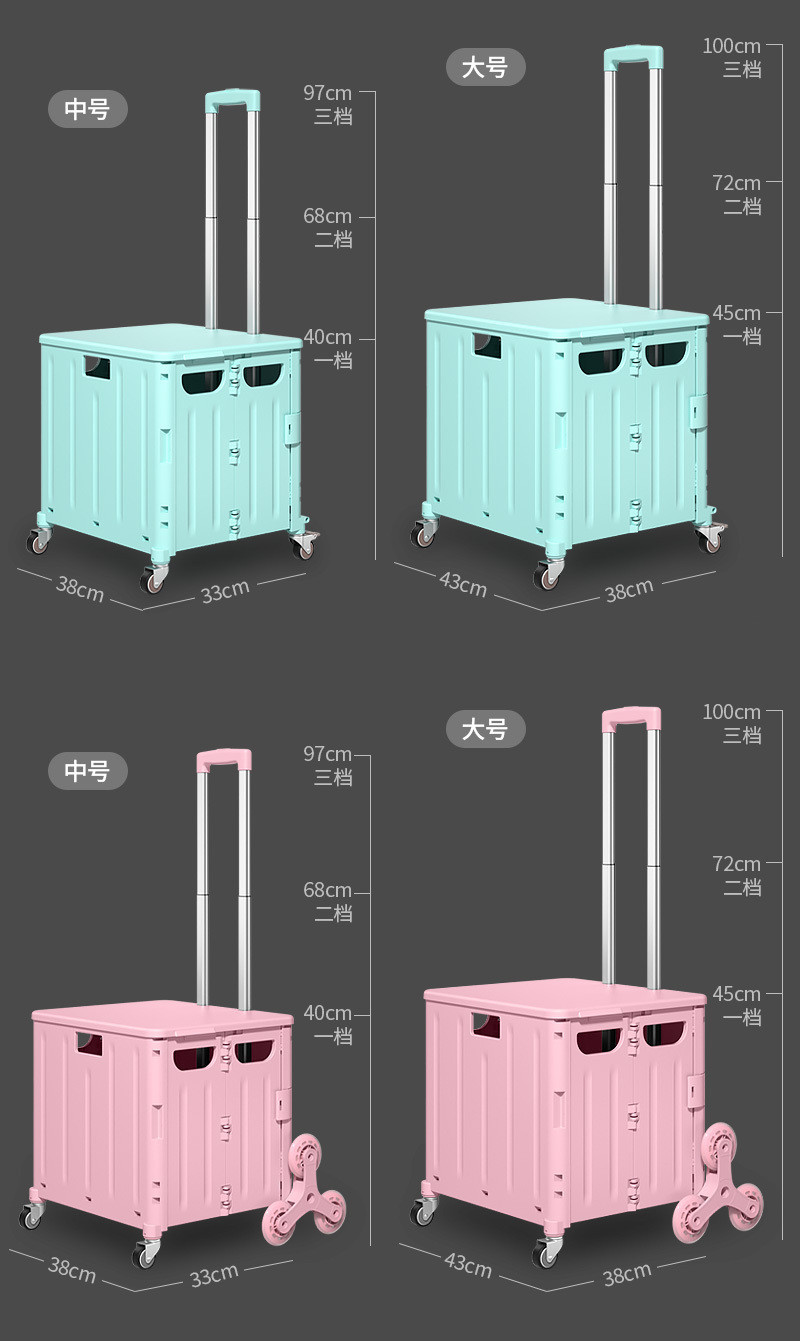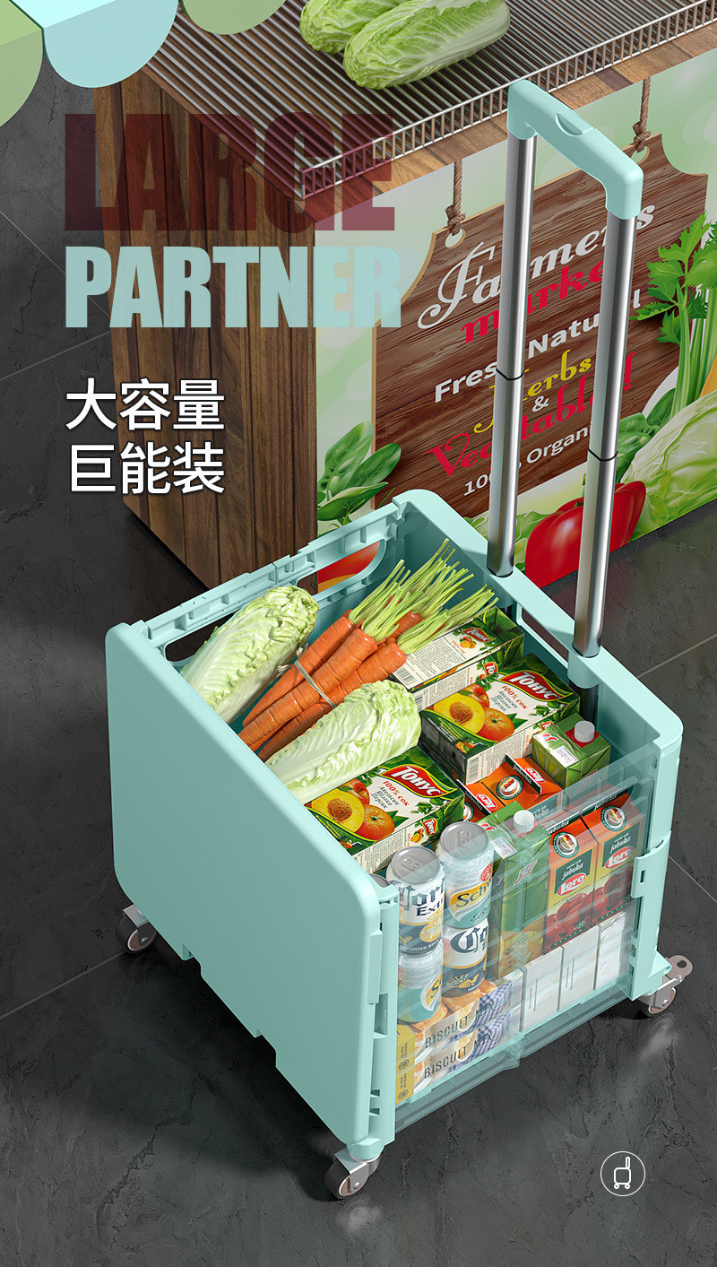 Q6G Jisheng 휴대용 쇼핑 트롤리 가정용 보관 상자 식료품 쇼핑 접이식 트롤리 야외 자동차 캠핑 트롤리
