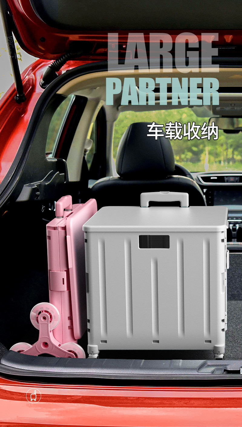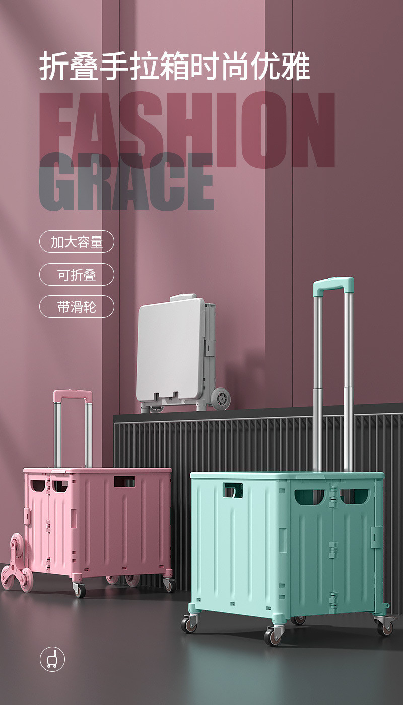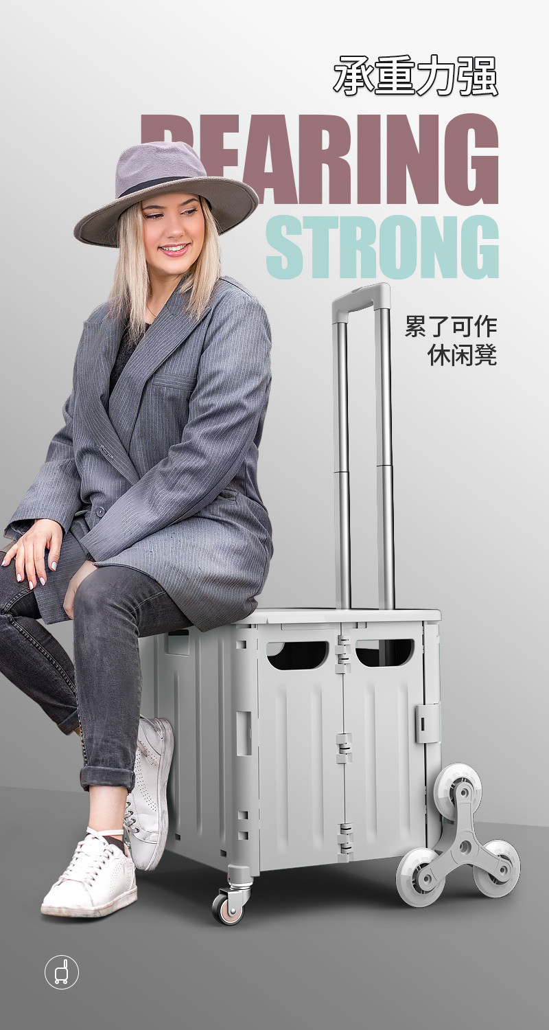 Q6G Jisheng 휴대용 쇼핑 트롤리 가정용 보관 상자 식료품 쇼핑 접이식 트롤리 야외 자동차 캠핑 트롤리
