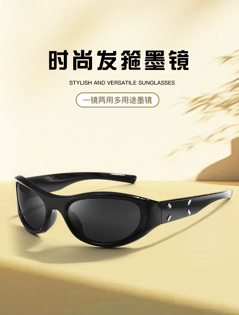 • 브라이트 블랙 프레임 그레이 필름 [헤드밴드 선글라스 4점식 메탈 힌지]