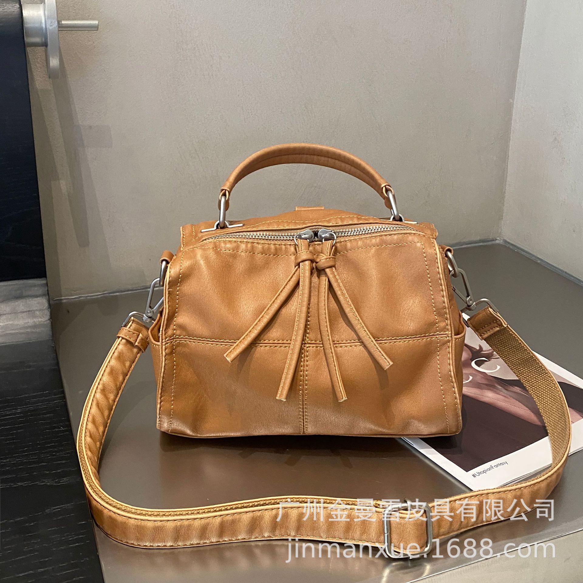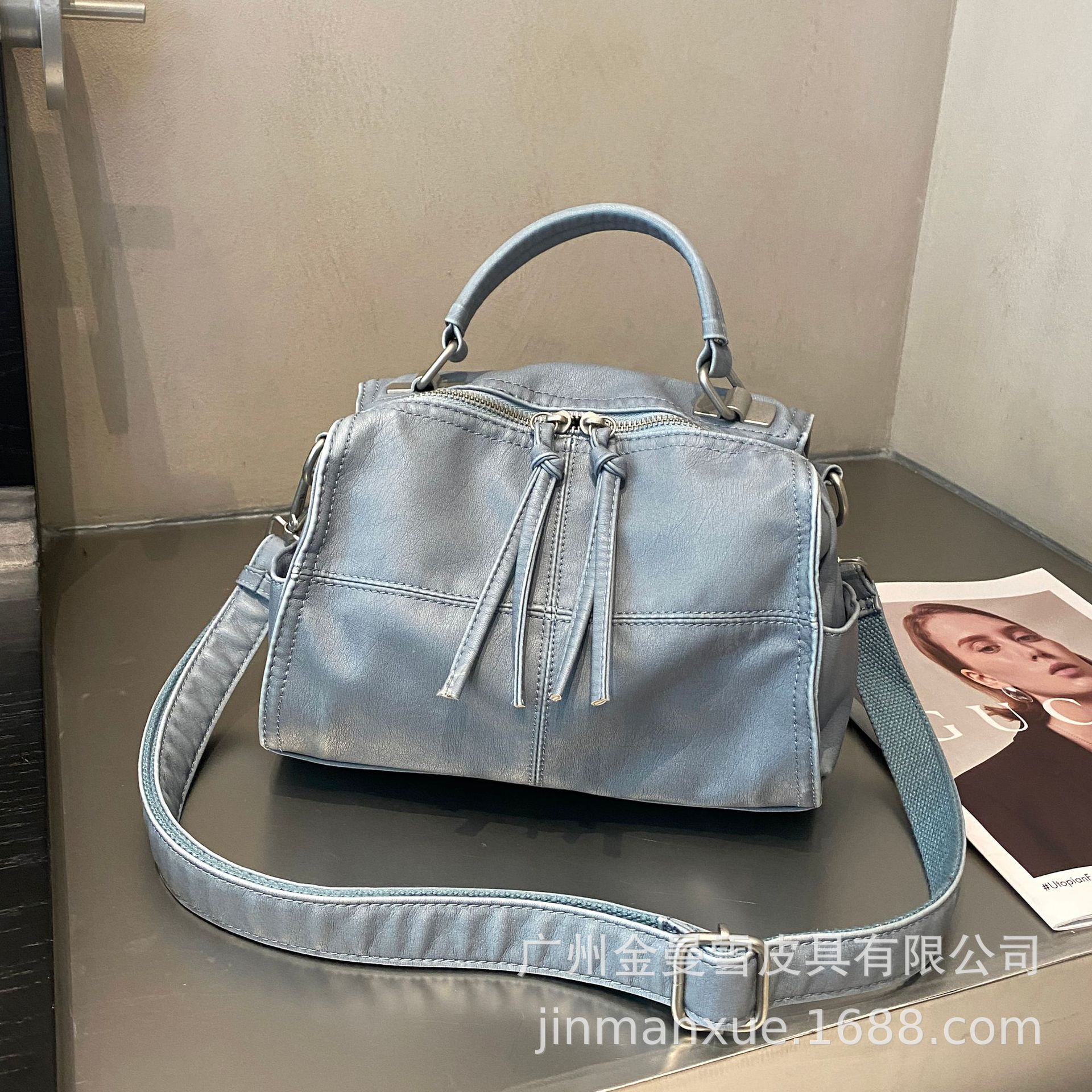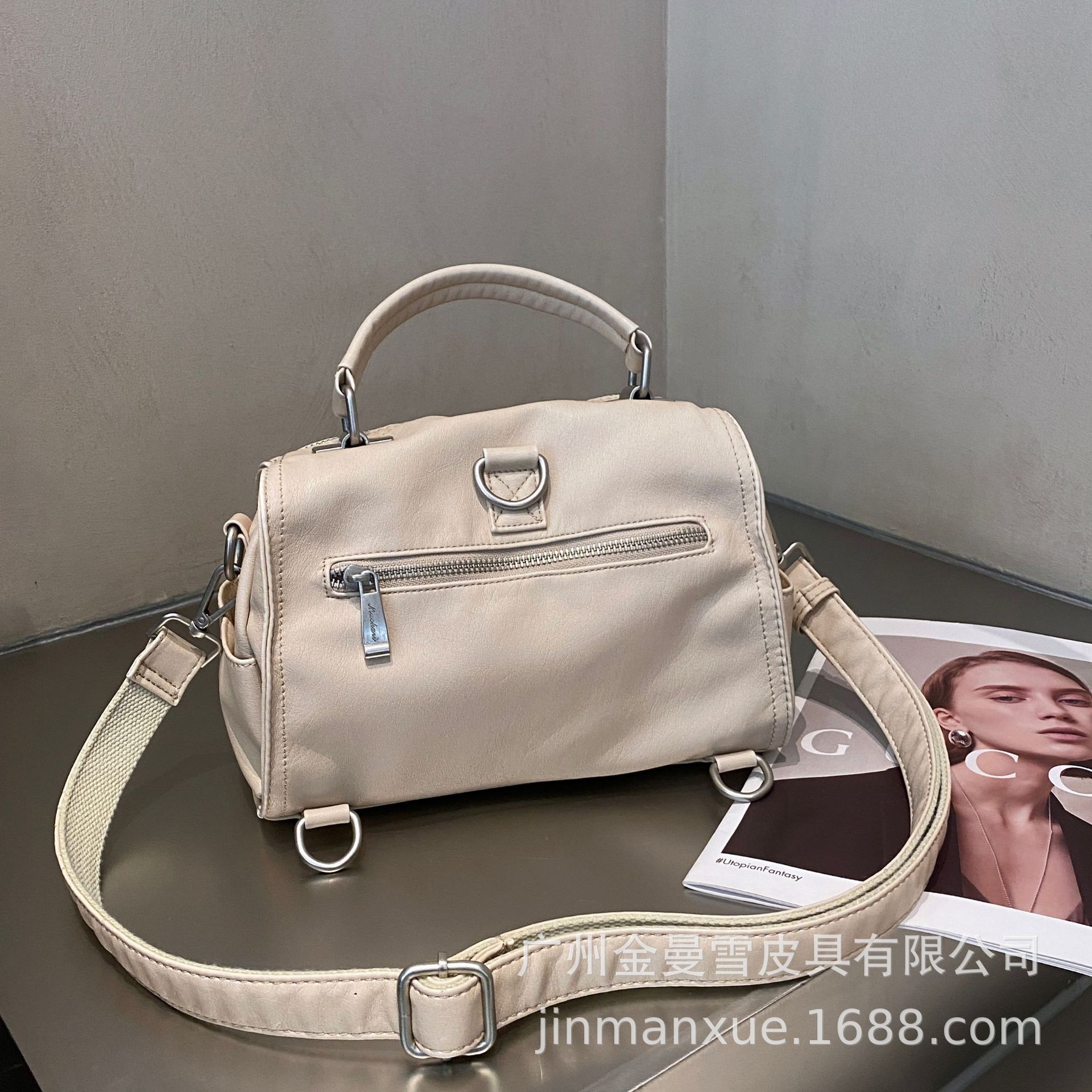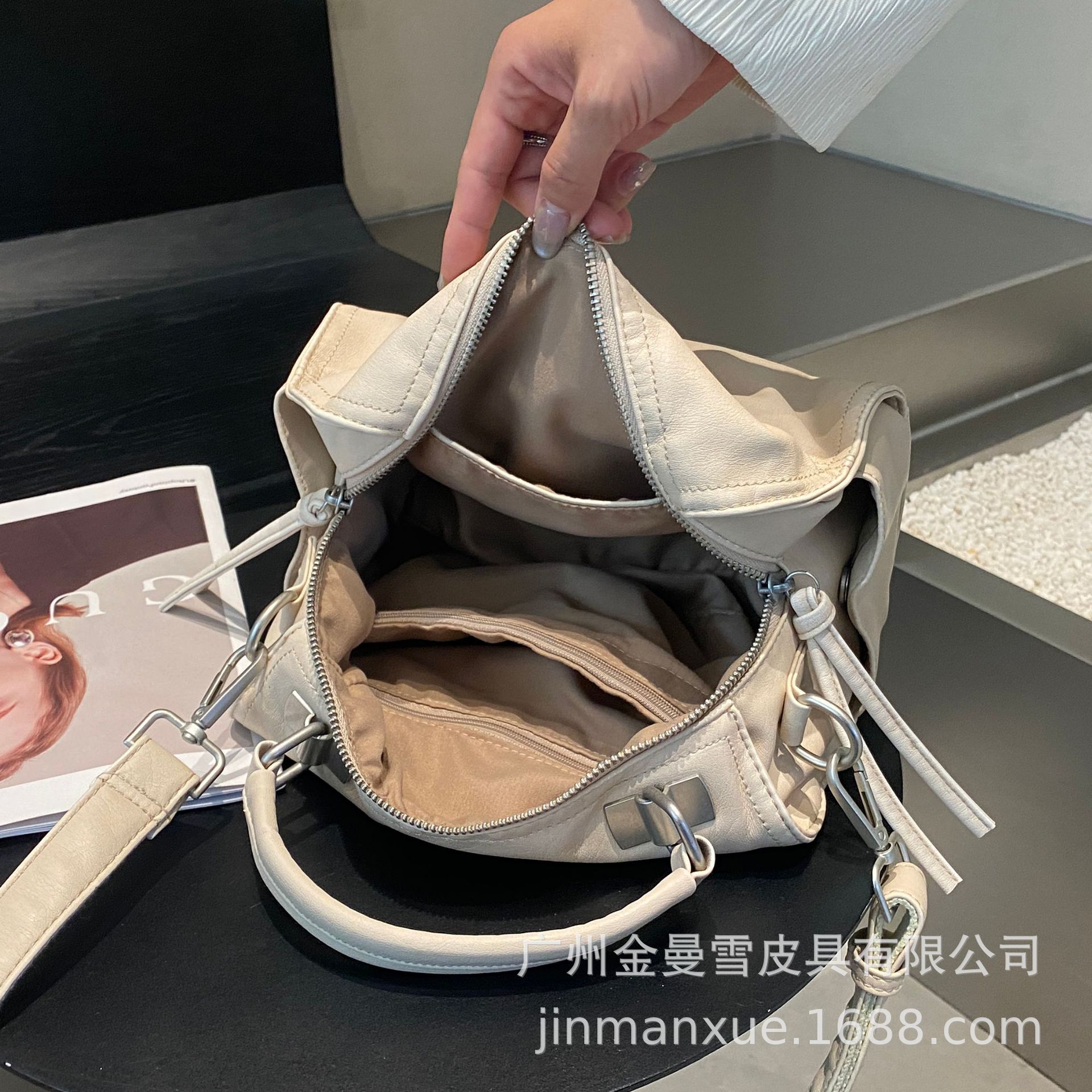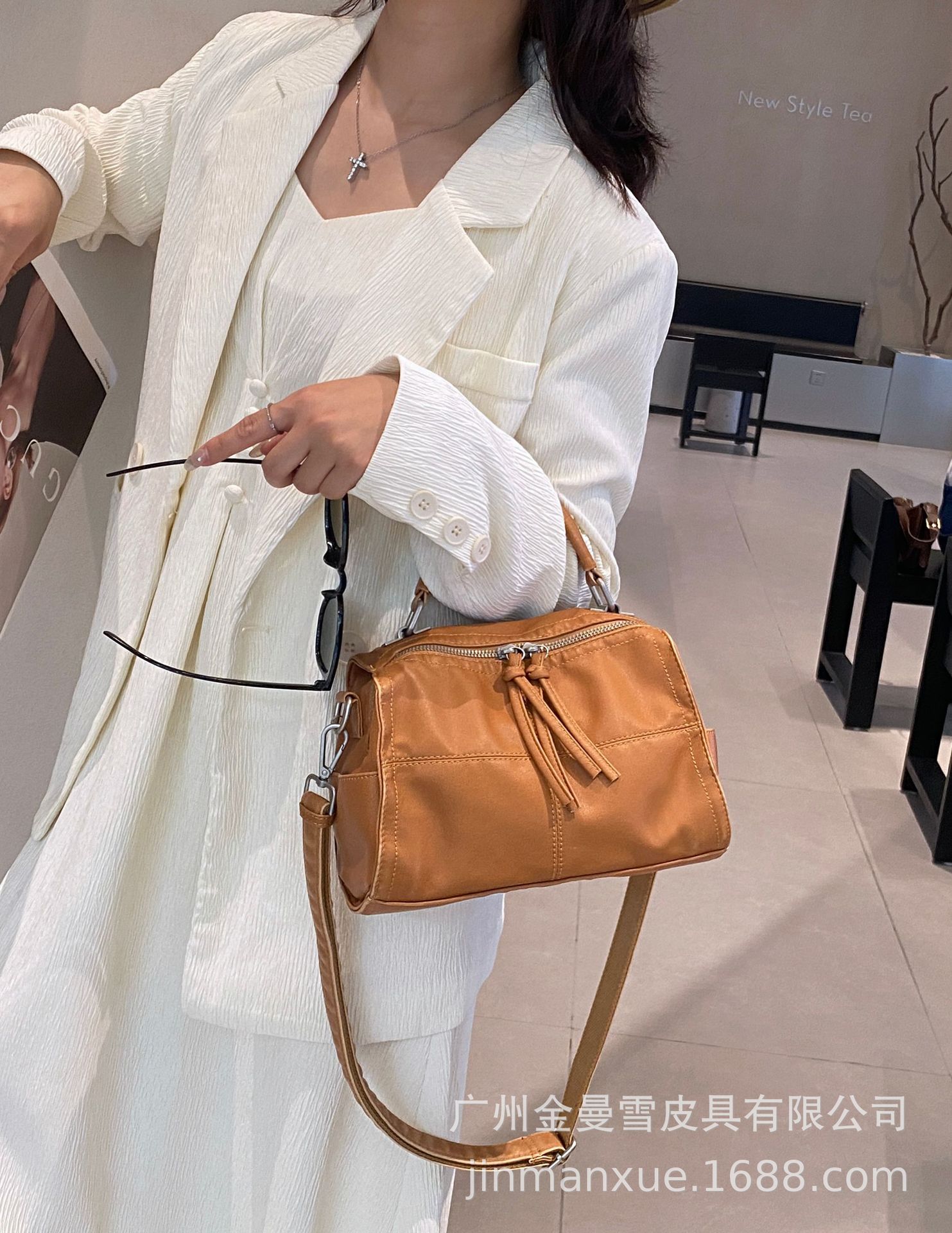 국경을 넘나드는 2025년 새로운 부드러운 가죽 크로스바디 다용도 가방 캐주얼 워싱 가죽 심플하고 다재다능한 휴대용 숄더백스토어 가기