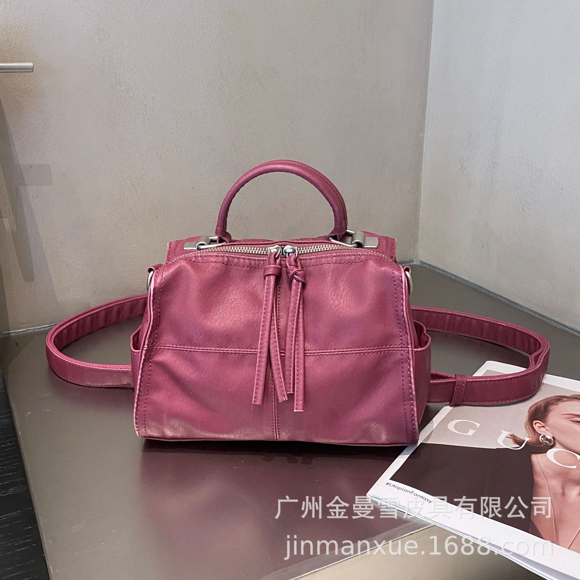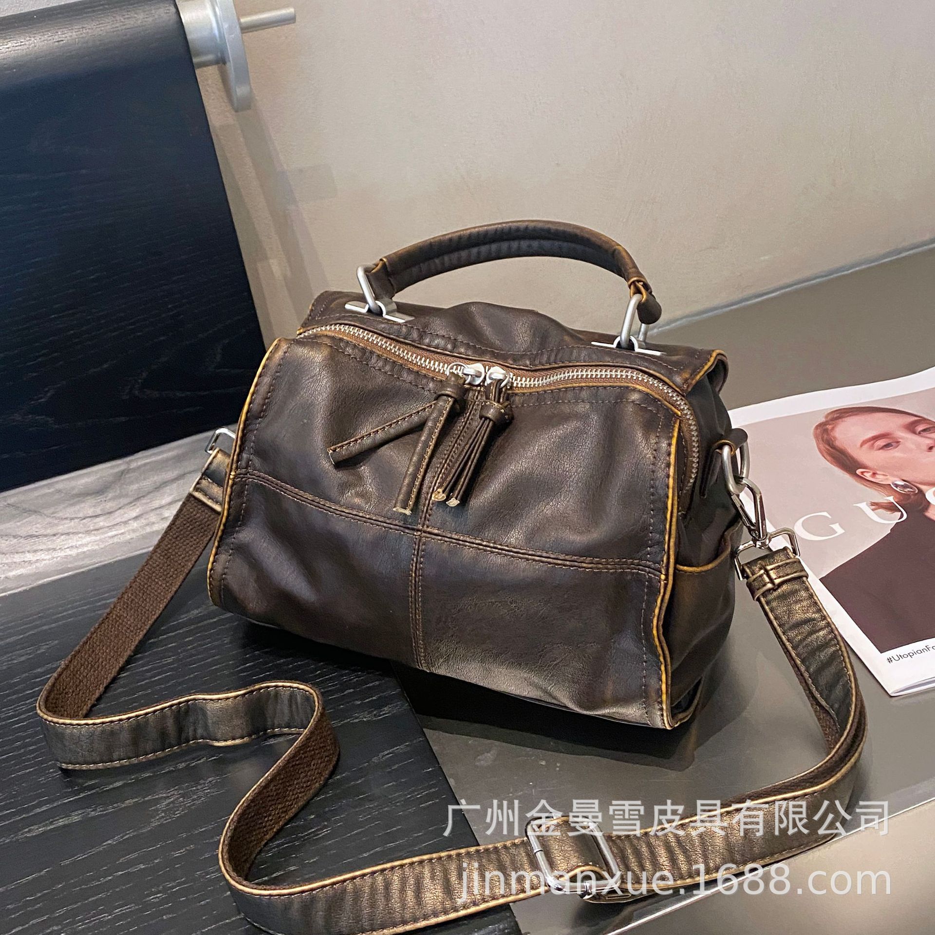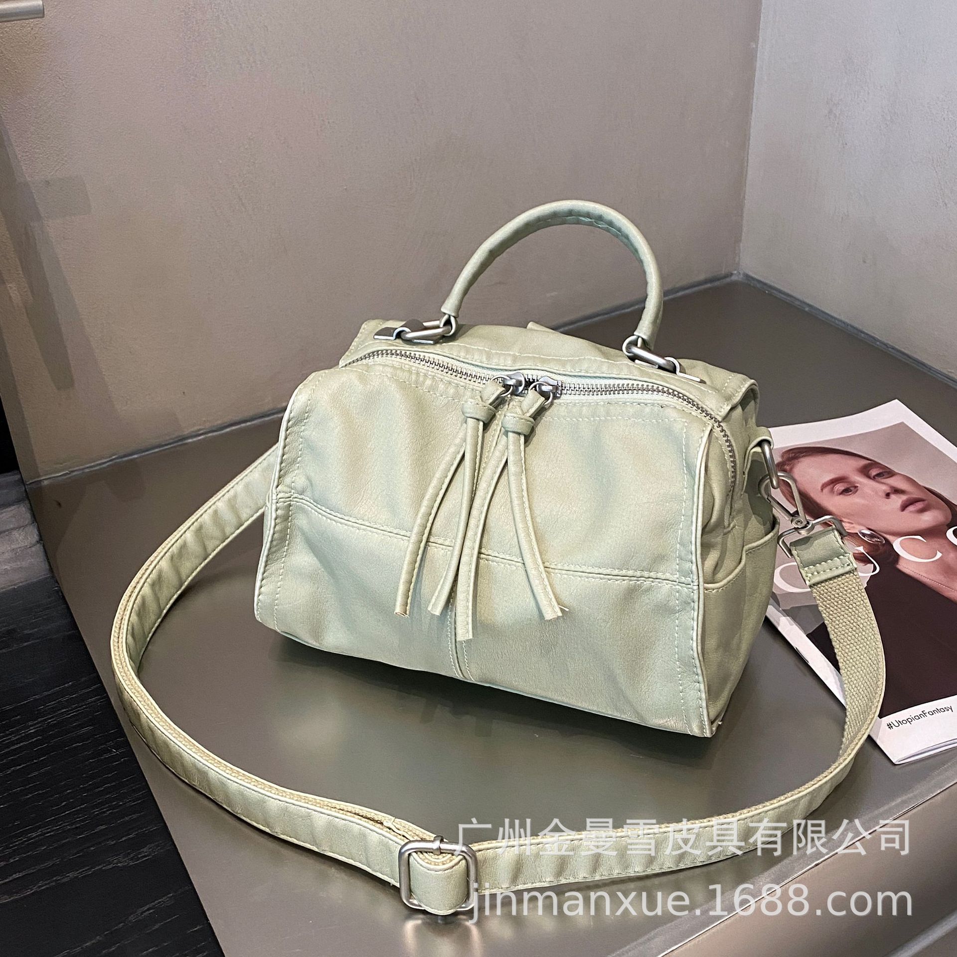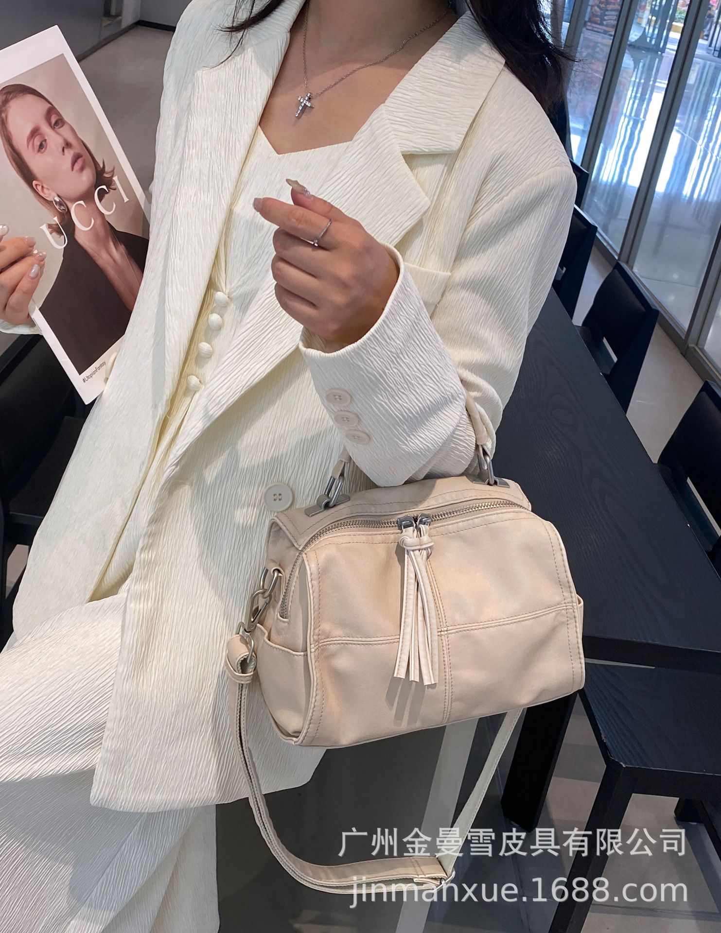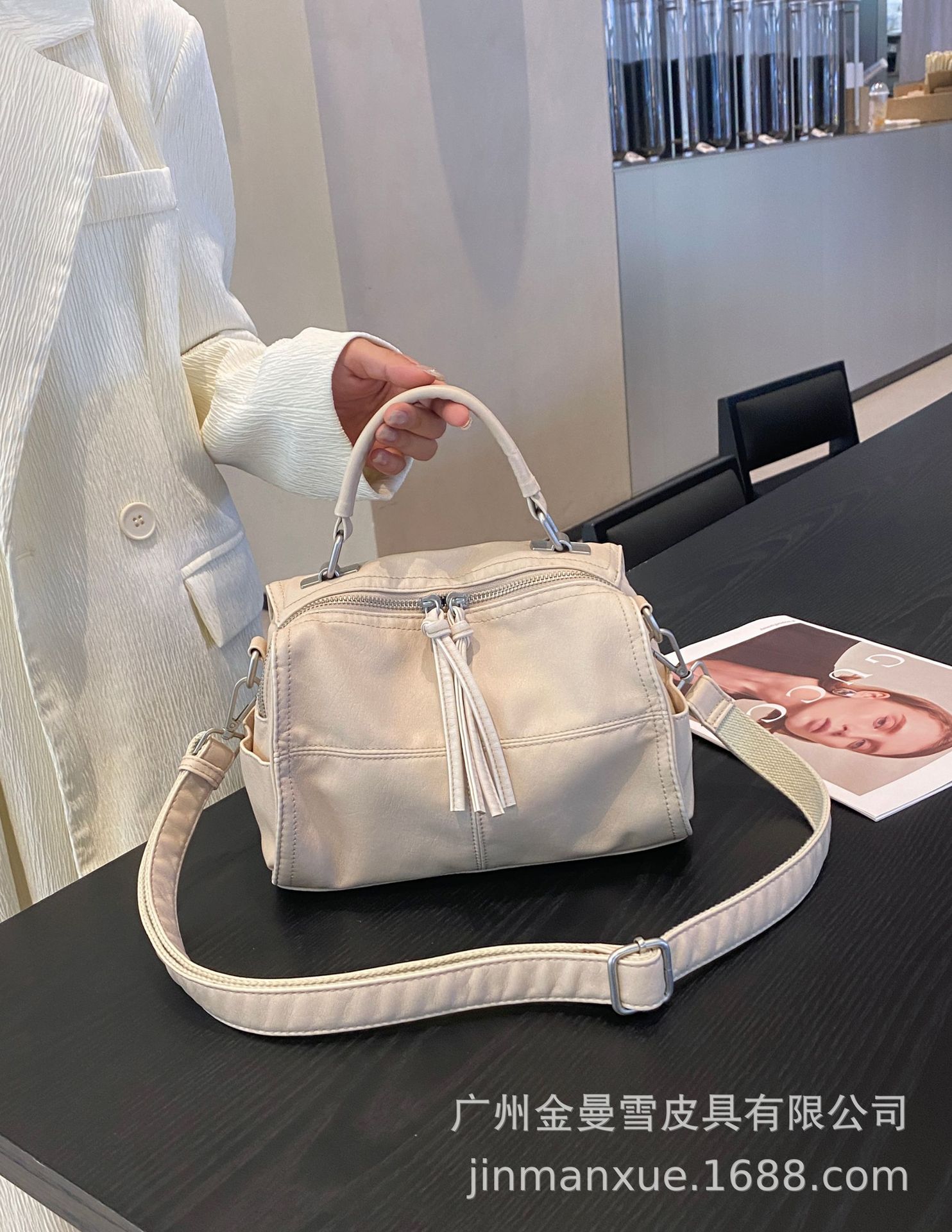 국경을 넘나드는 2025년 새로운 부드러운 가죽 크로스바디 다용도 가방 캐주얼 워싱 가죽 심플하고 다재다능한 휴대용 숄더백스토어 가기