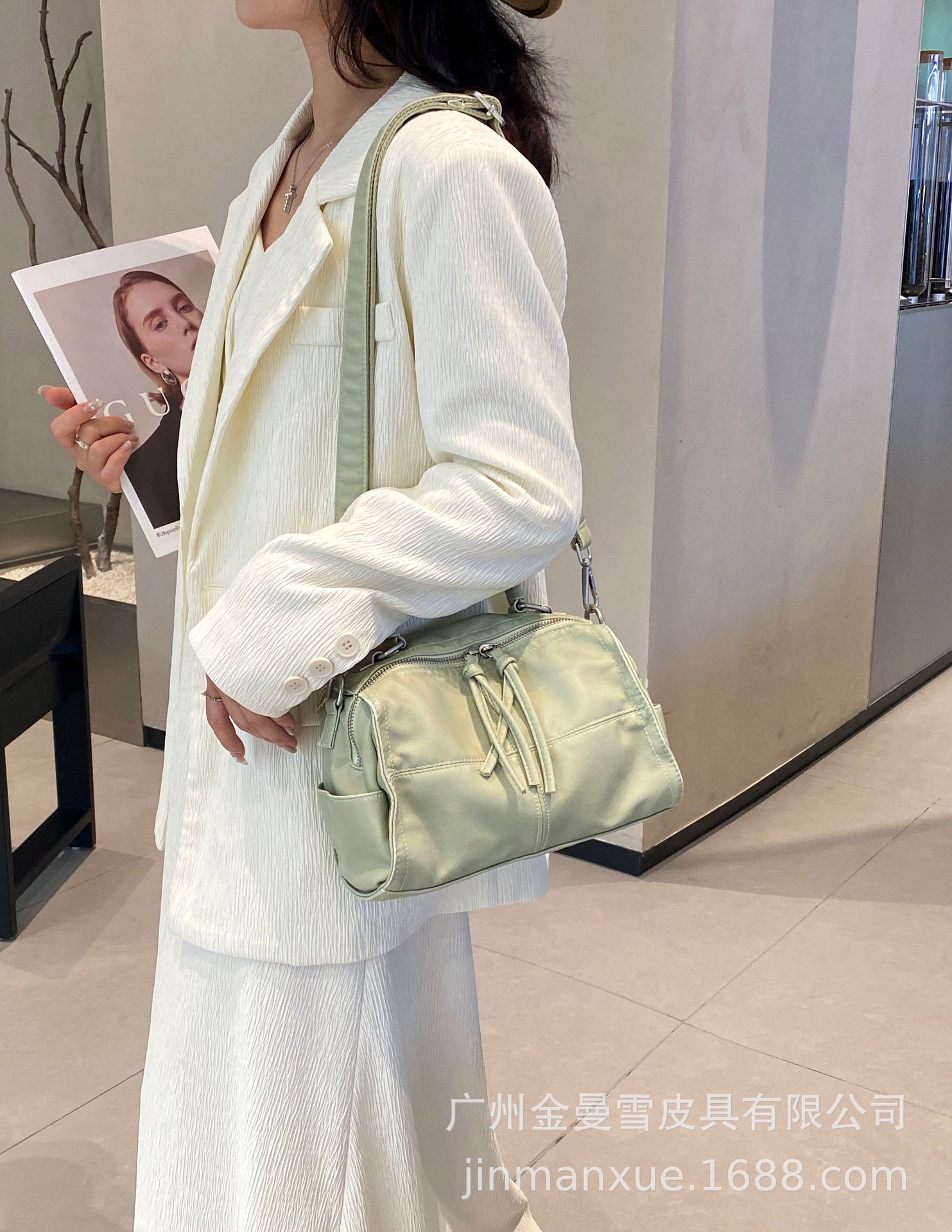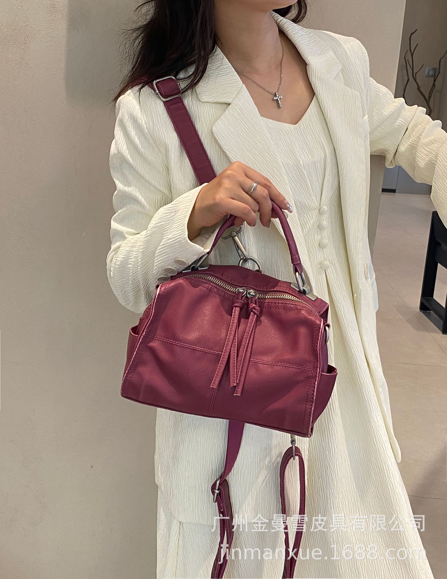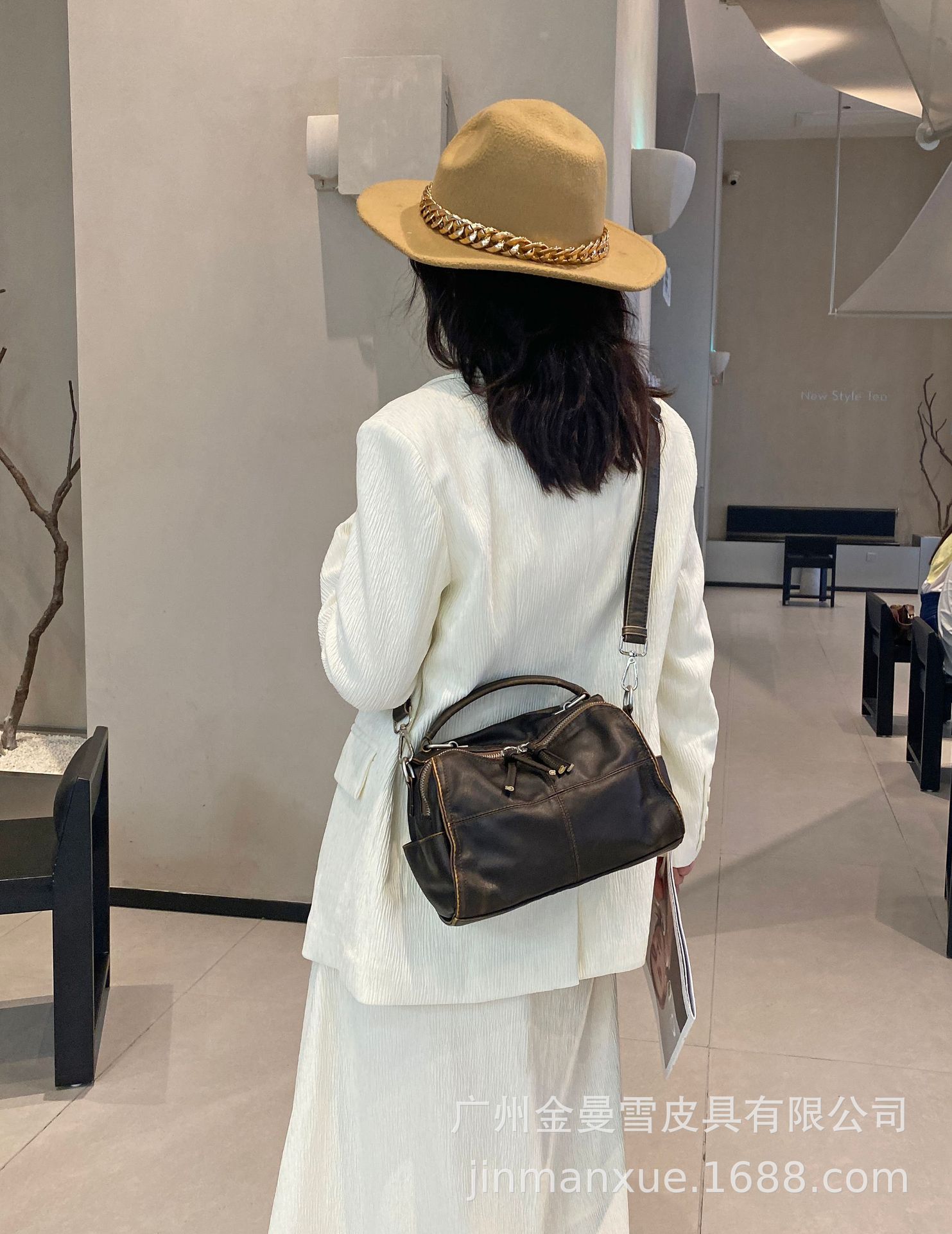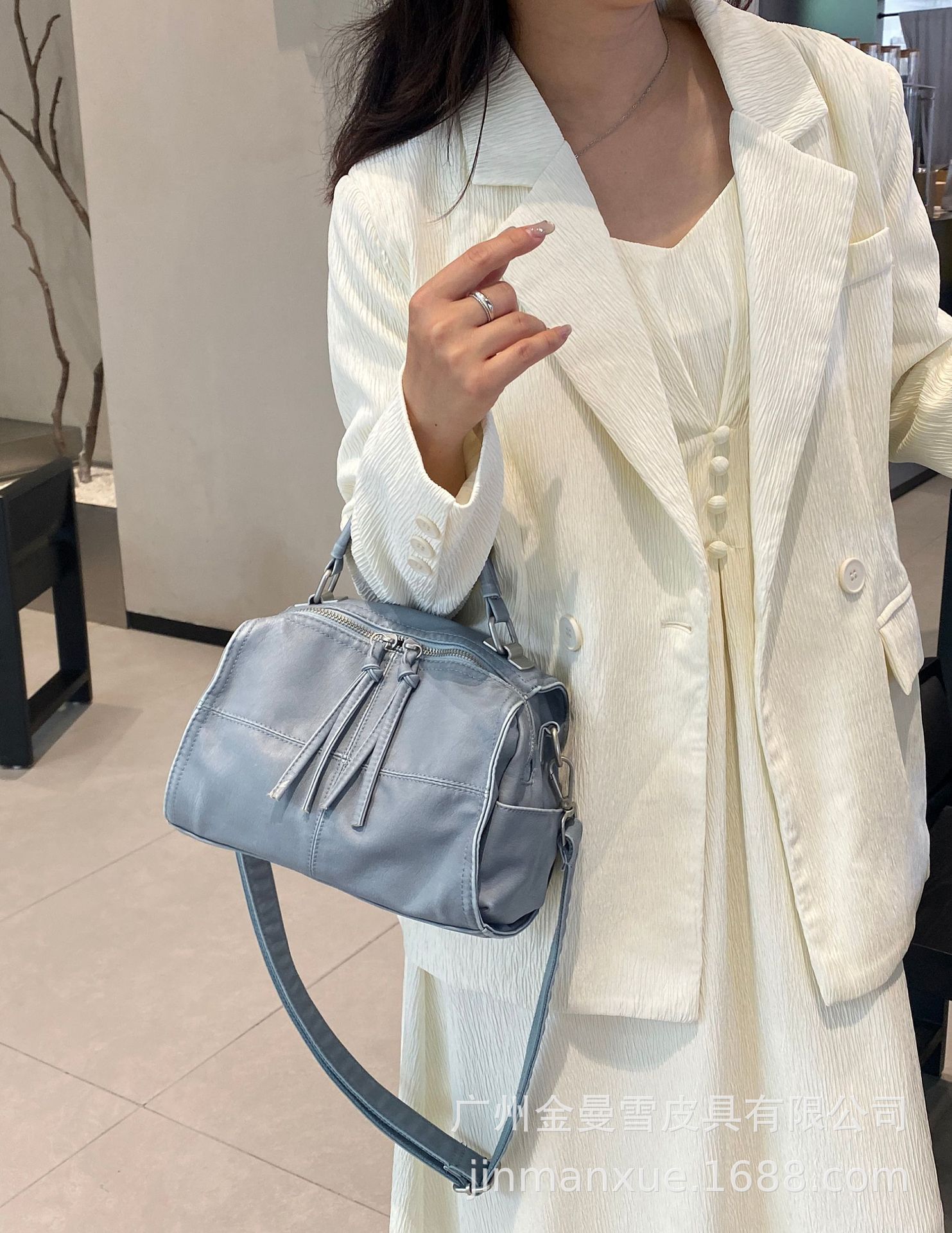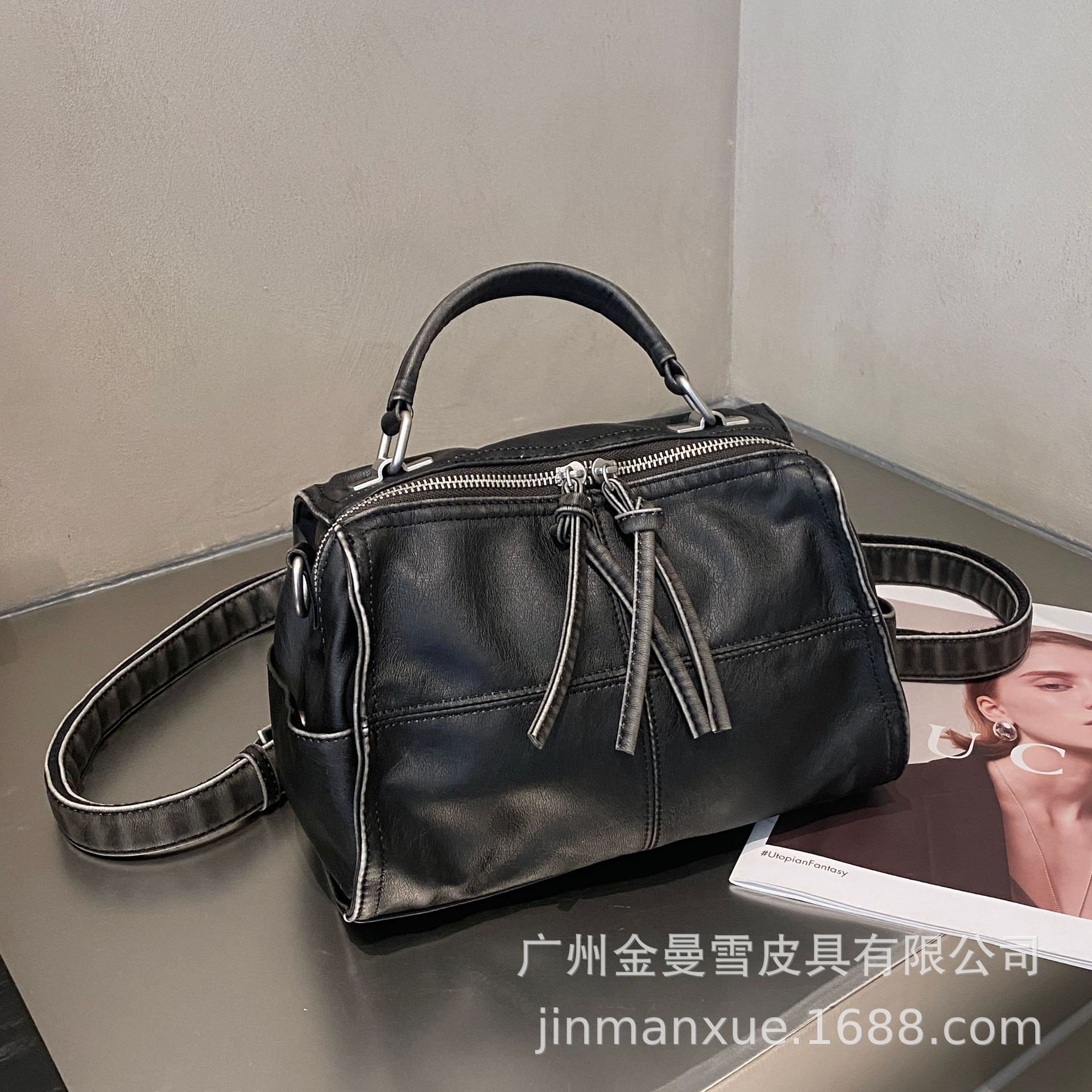 국경을 넘나드는 2025년 새로운 부드러운 가죽 크로스바디 다용도 가방 캐주얼 워싱 가죽 심플하고 다재다능한 휴대용 숄더백스토어 가기