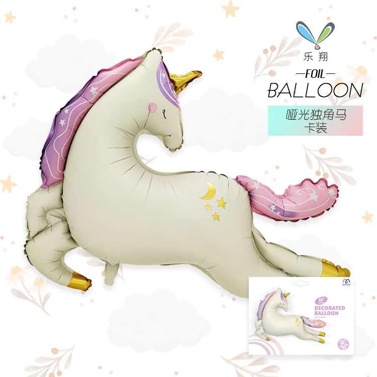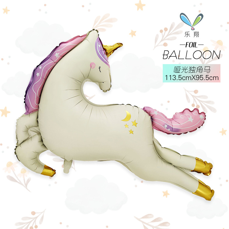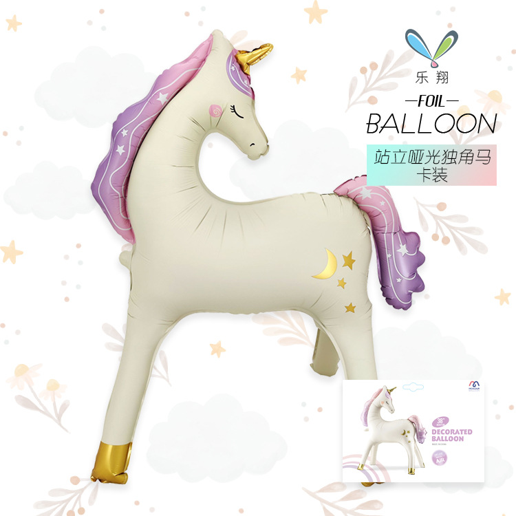 MECRLA 신형 무광 유니콘 알루미늄 필름 풍선 3D 스탠딩 목마 어린이 생일 파티 장식스토어 가기