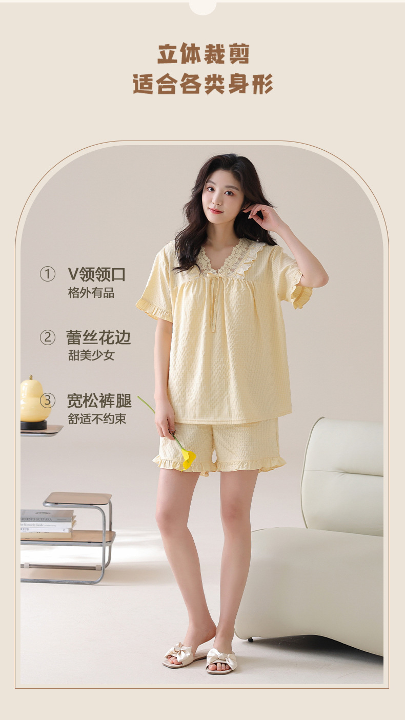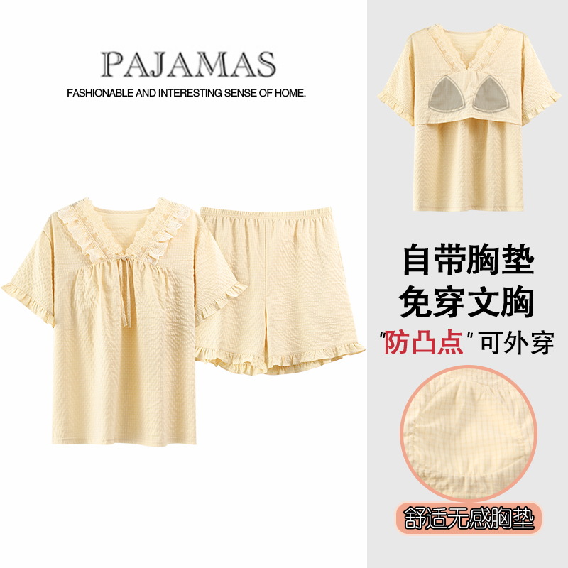 가슴 패드가있는 홈 의류 여성의 여름은 귀여운 아이스 실크 파자마 얇은 통기성 반소매 파자마 세트 도매로 나갈 수 있습니다.스토어 가기