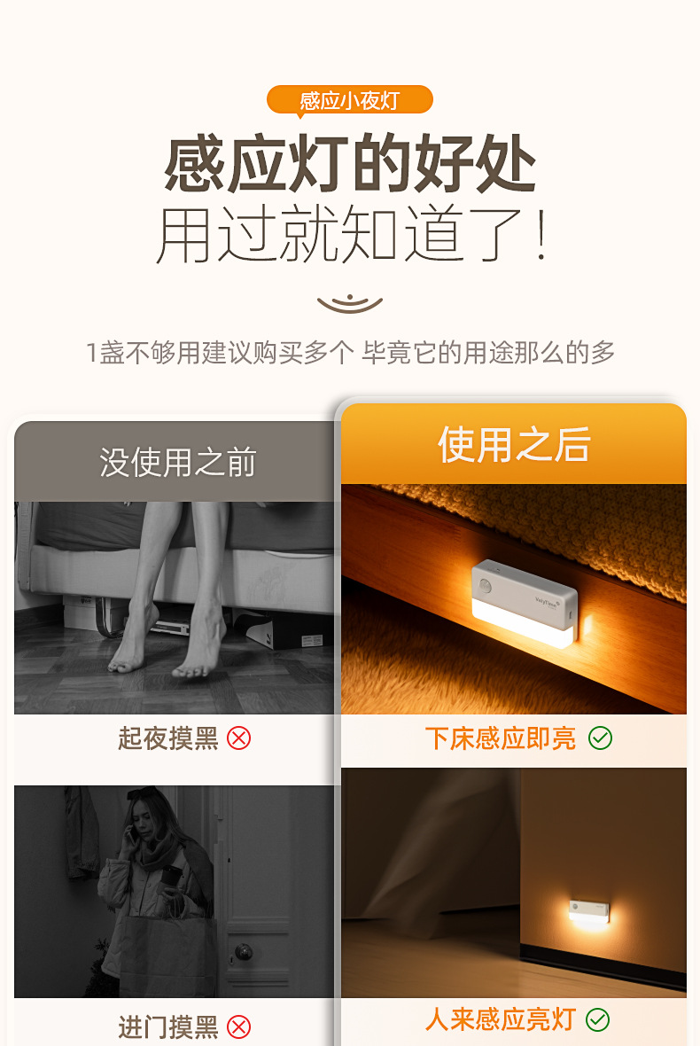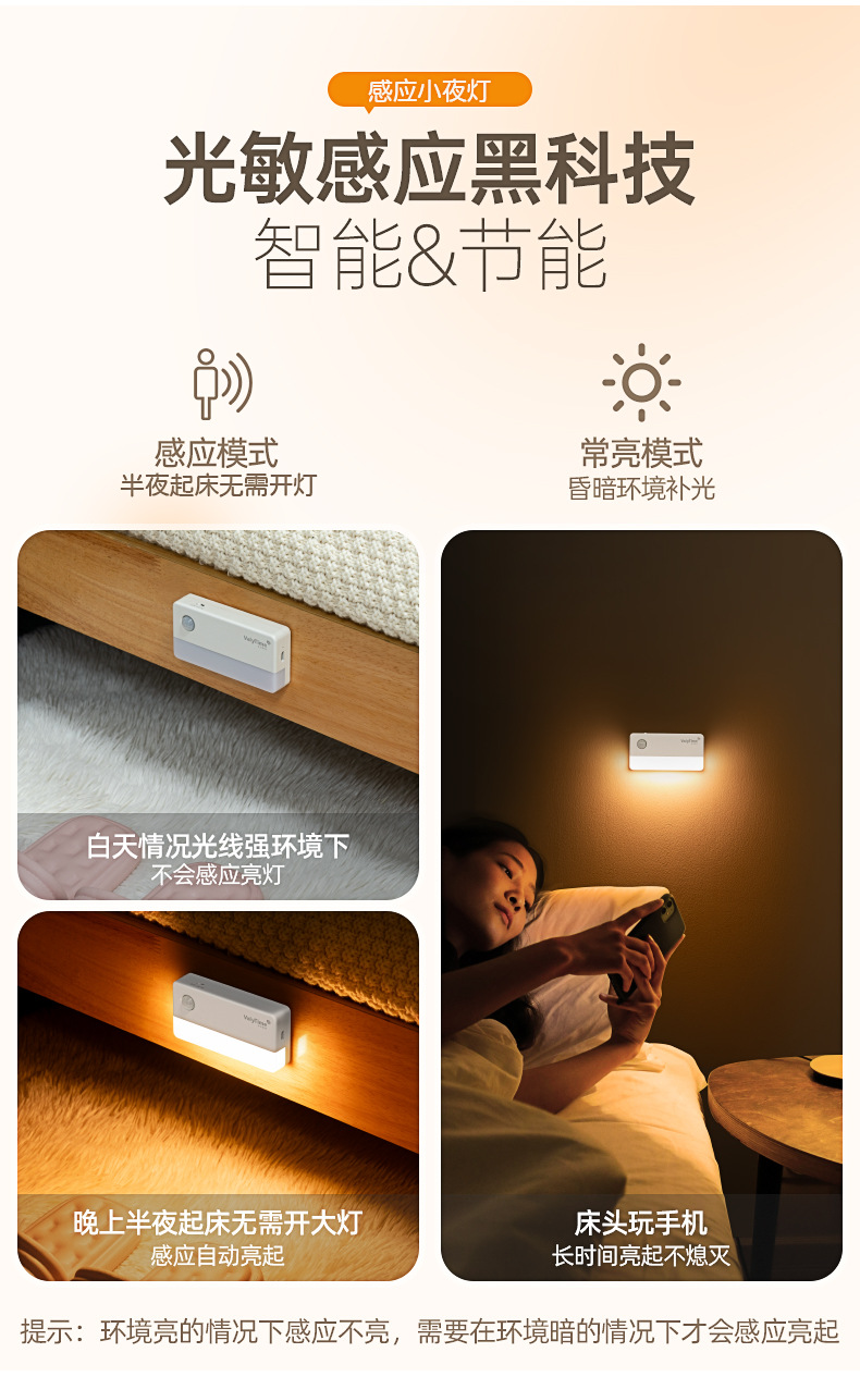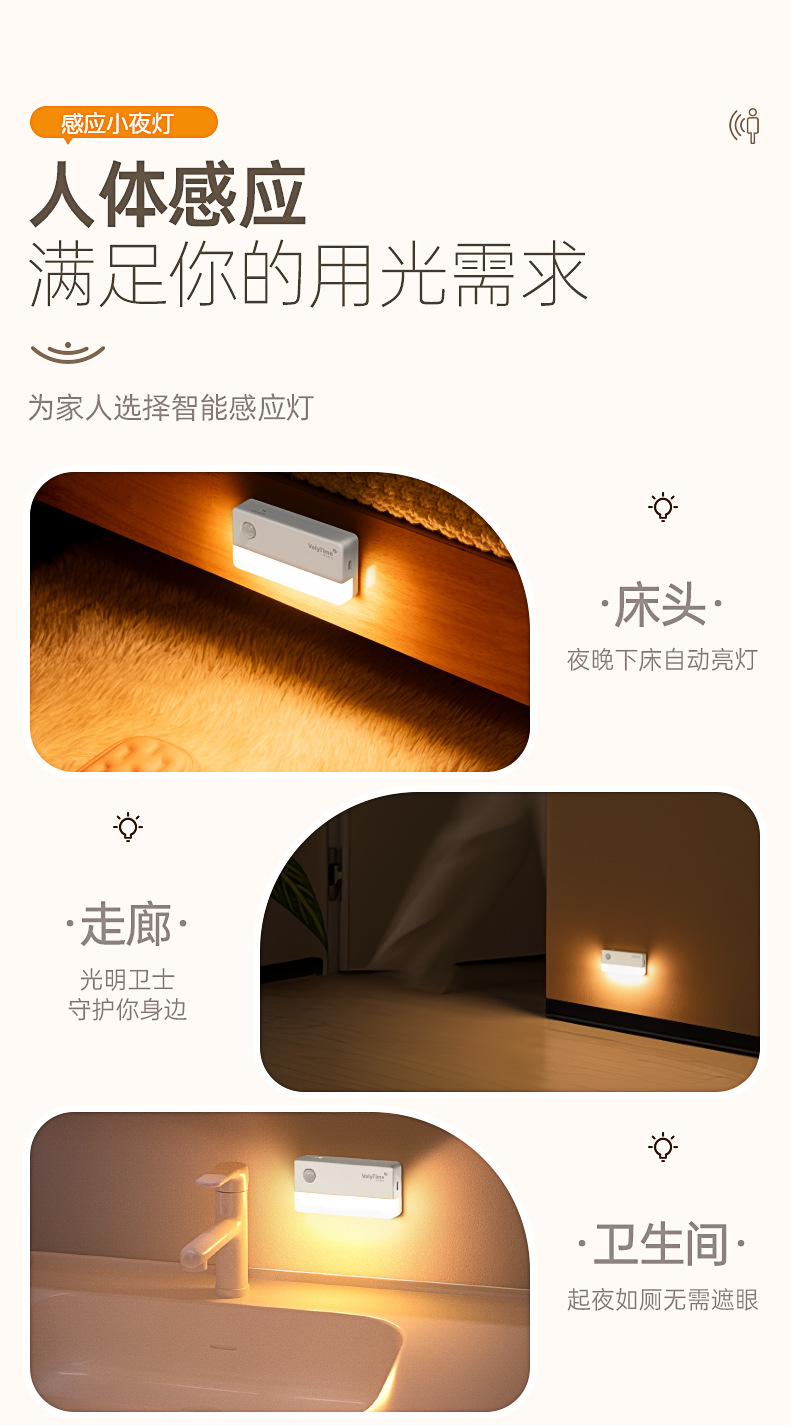 스마트 홈 충전식 인체 자동 센서 램프 야간 침실 머리맡 통로 어린이 조명 제어 LED 야간 조명