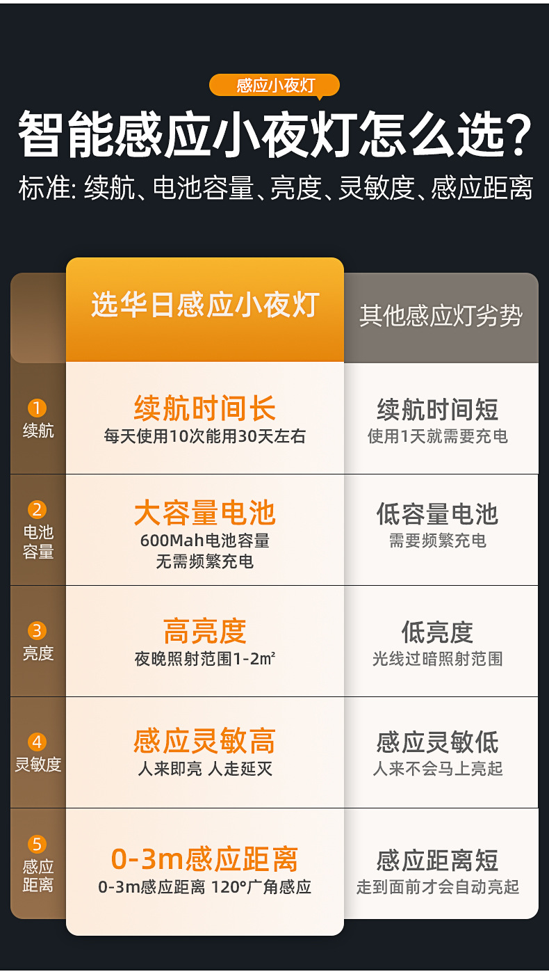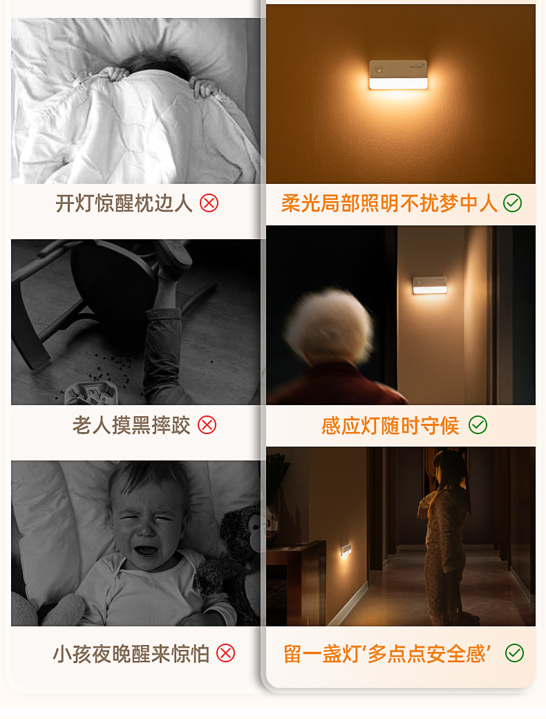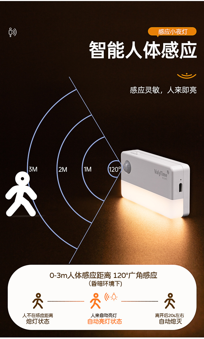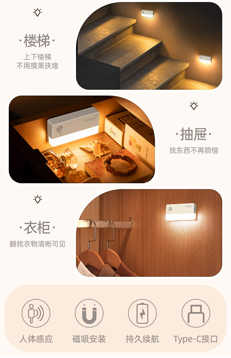 스마트 홈 충전식 인체 자동 센서 램프 야간 침실 머리맡 통로 어린이 조명 제어 LED 야간 조명