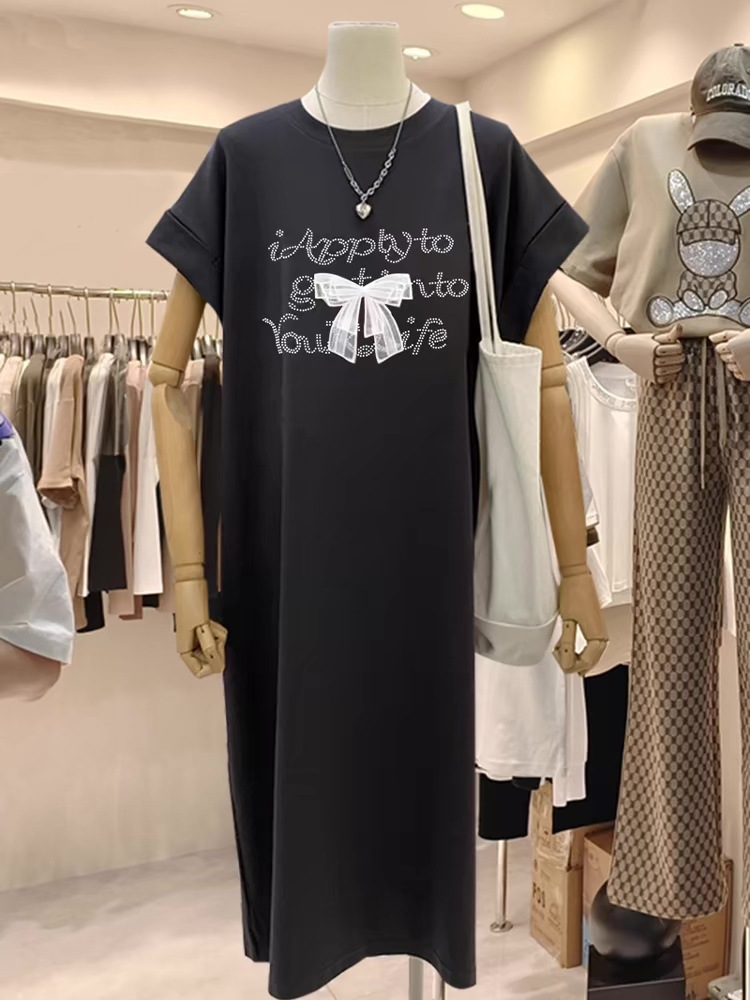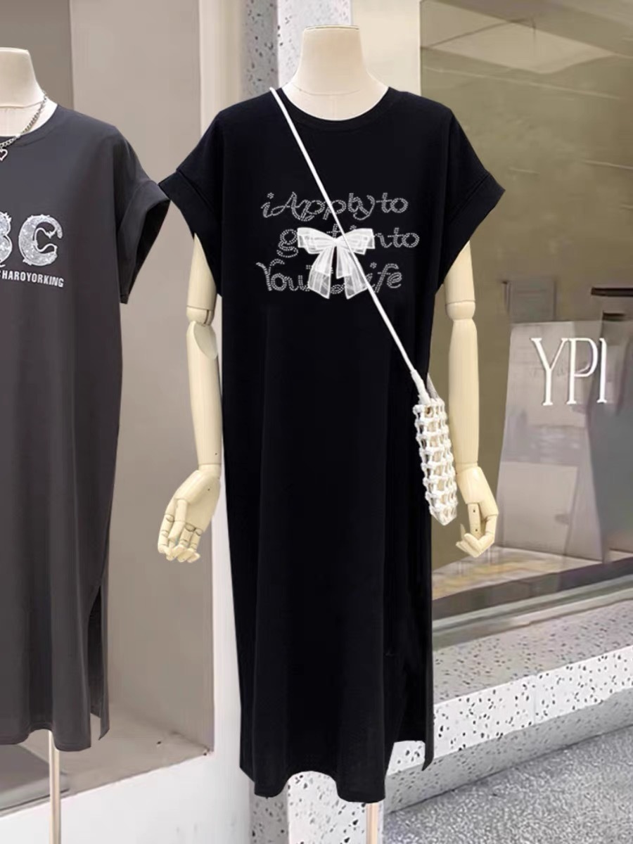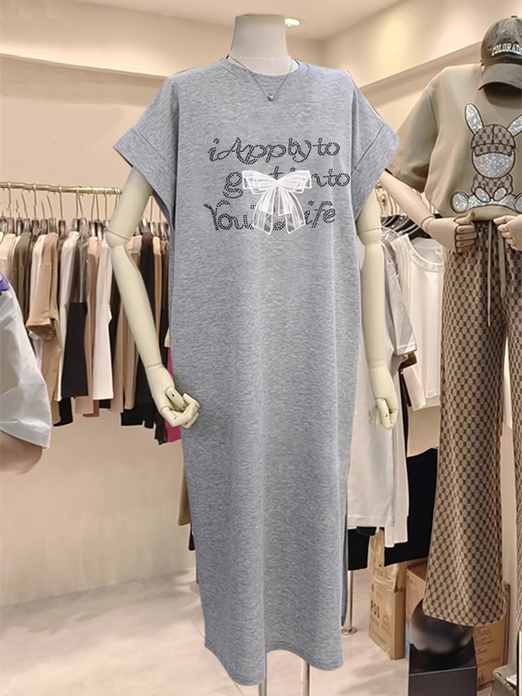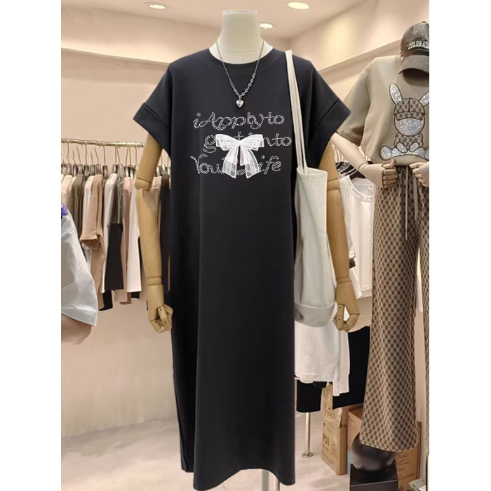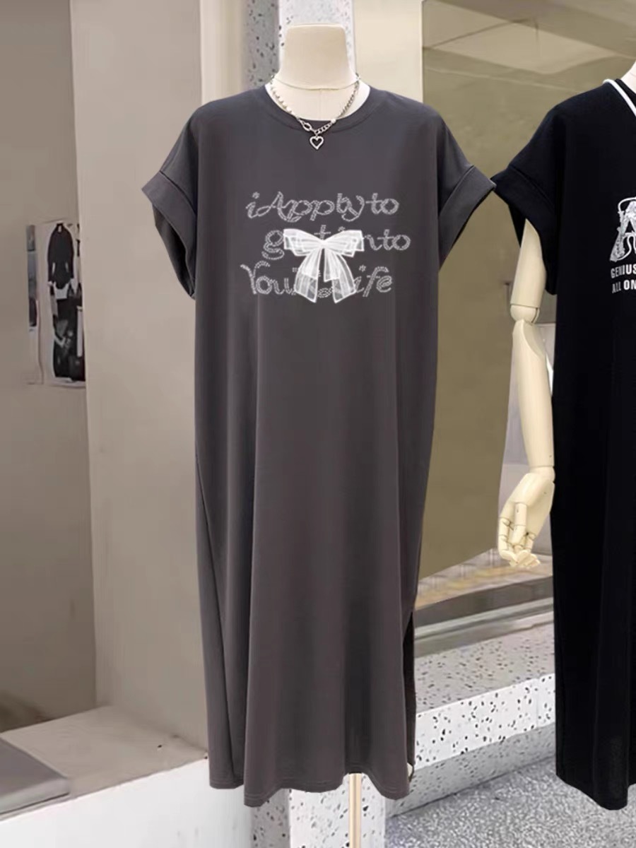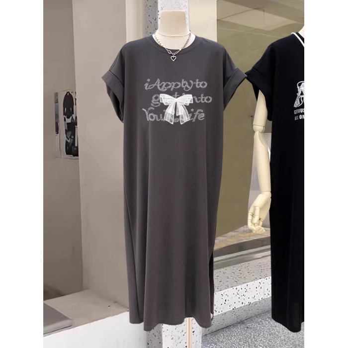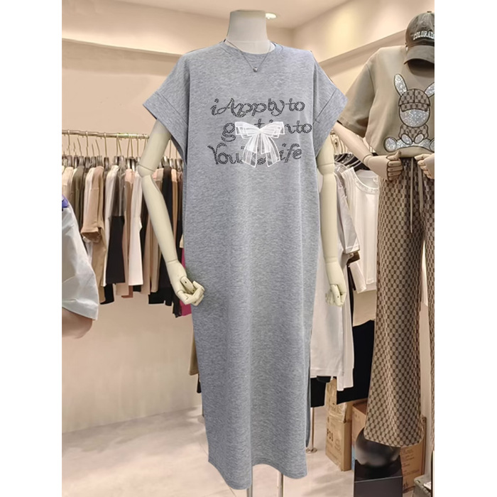 빅사이즈 파자마, 맞춤형 디자인, 리본, 한국식 루즈, 캐주얼, 서양식 플라잉 슬리브 슬릿 드레스 여성용스토어 가기