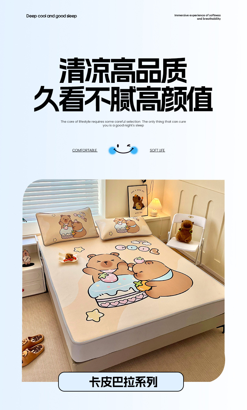Kapi Barakatong 아이스 실크 매트 어린이 학생 기숙사 에어컨 매트 유치원 접이식 매트 여름 편안한스토어 가기