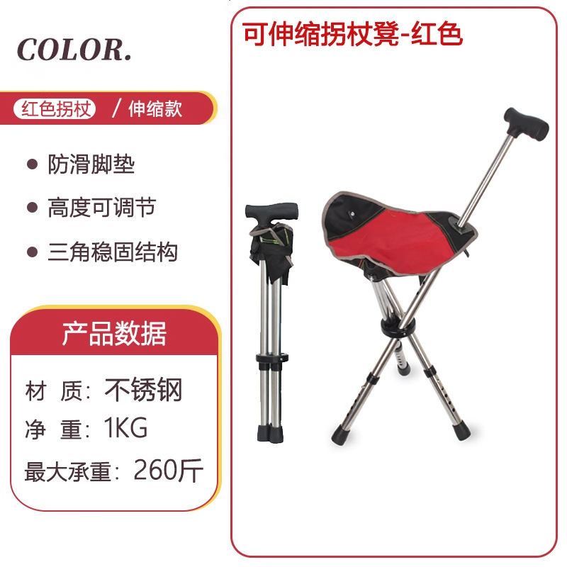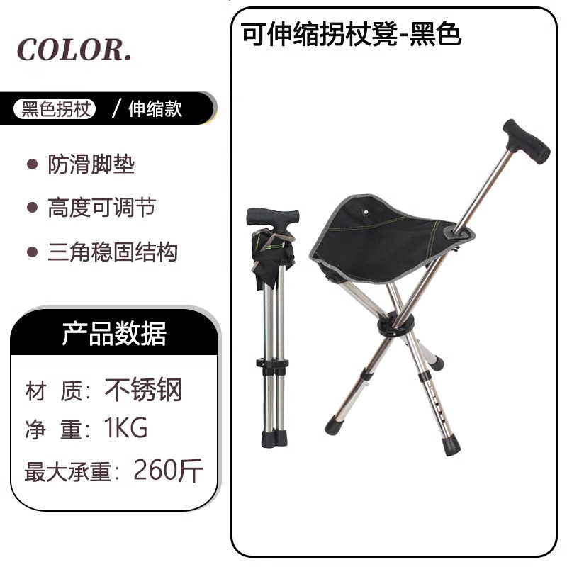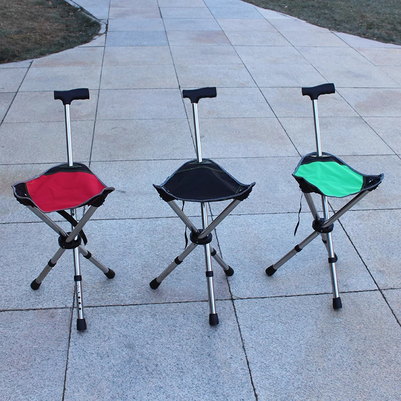야외 지팡이 의자 두꺼운 스테인레스 스틸 개폐식 및 접이식 삼각대 지팡이 의자 야외 하이킹 캠핑 하이킹 스틱스토어 가기