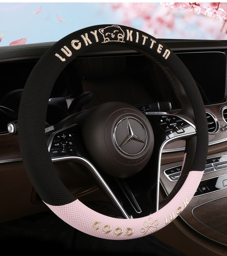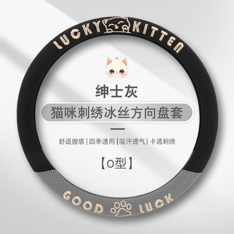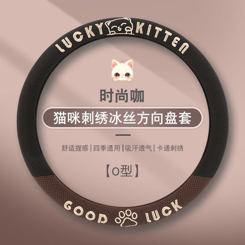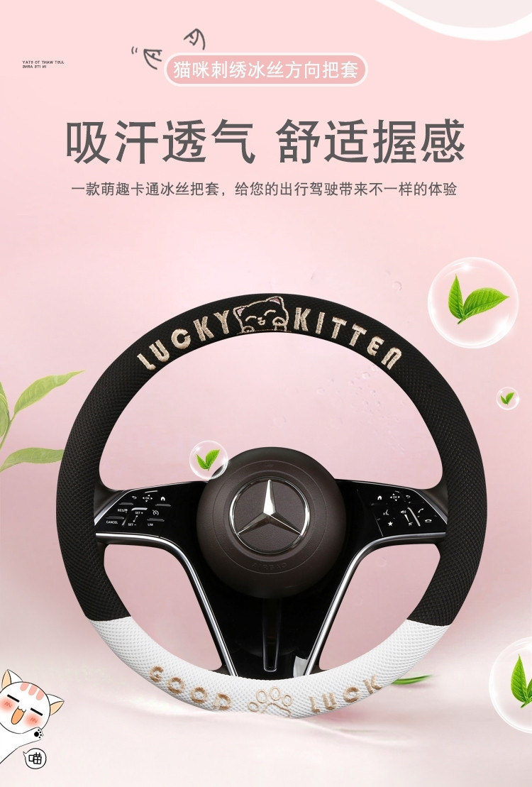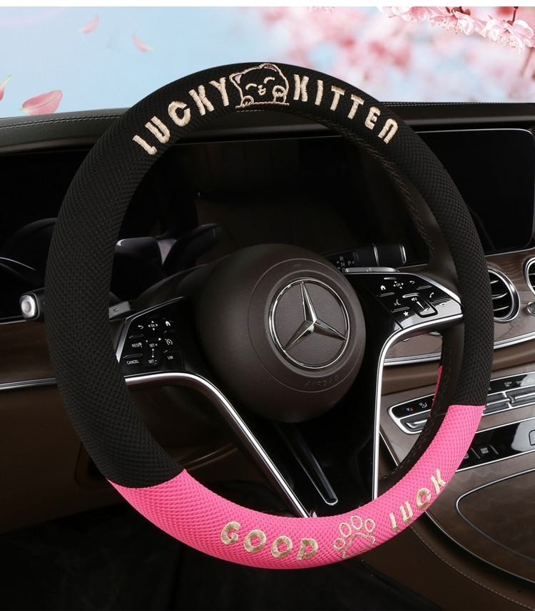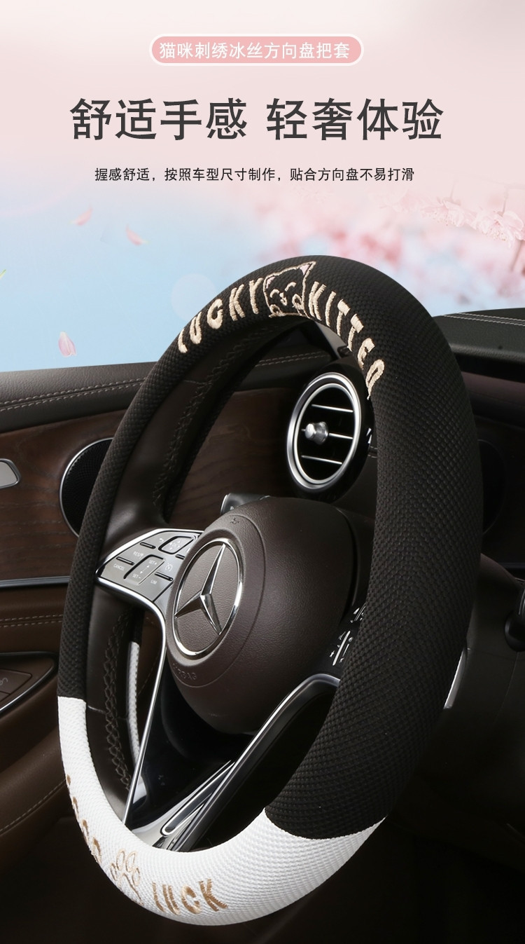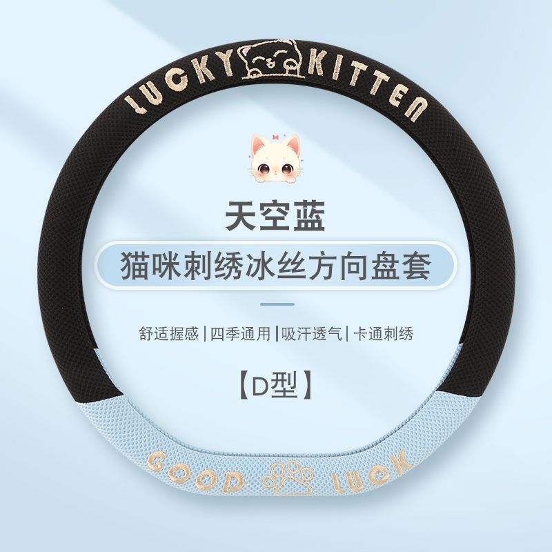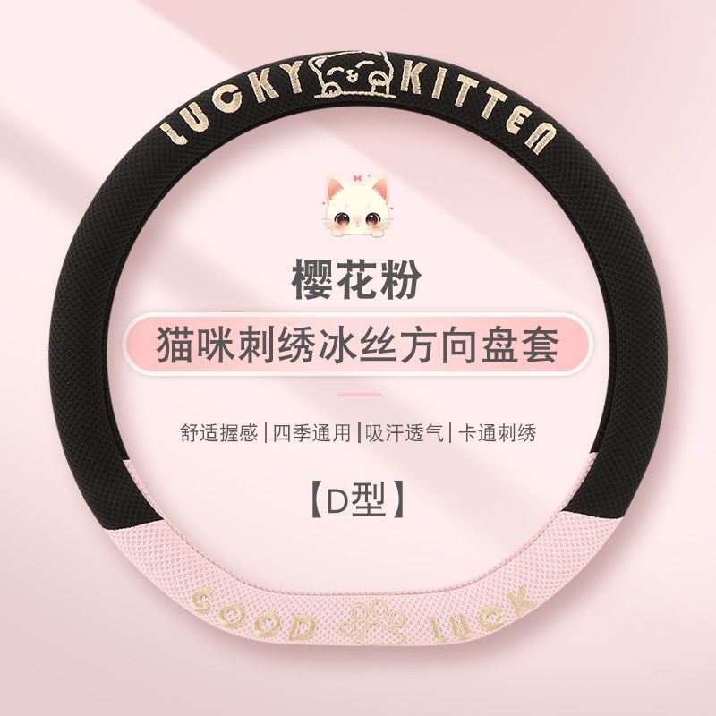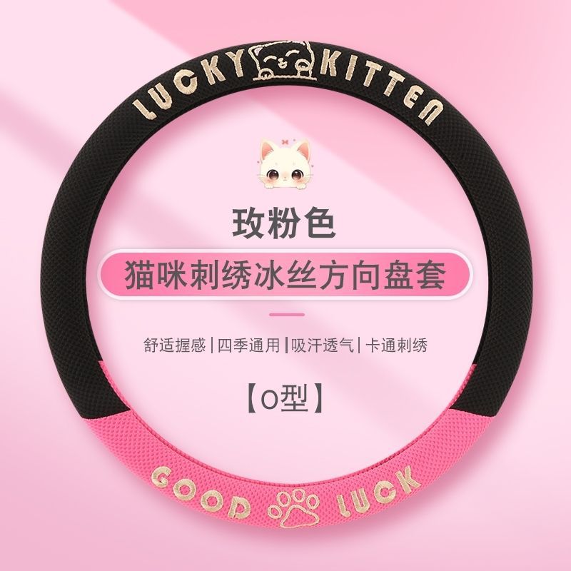 자동차 핸들 커버 사계절 사용 가능 통기성 아이스 실크 핸들 커버 여름용 만화 귀여운 자동차 인테리어 액세서리 여성용 귀여운 스타일