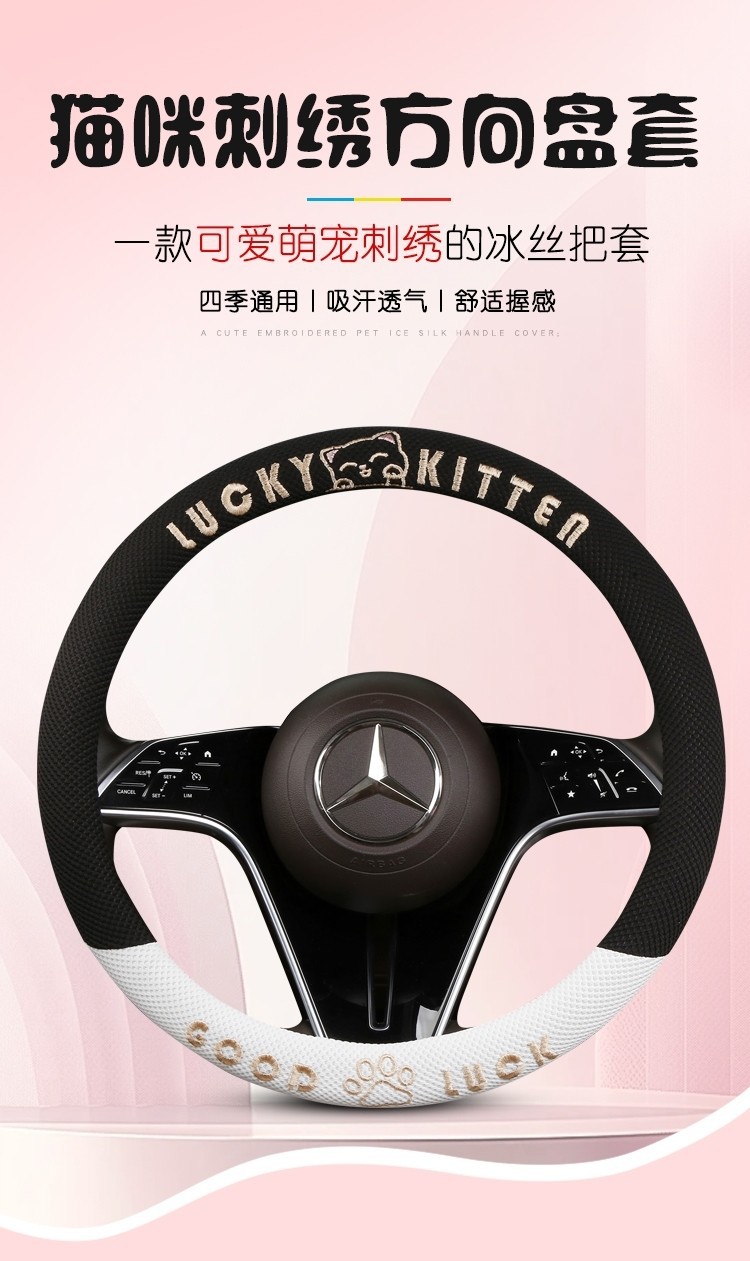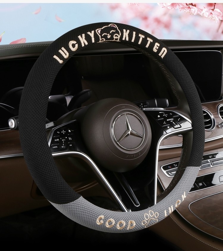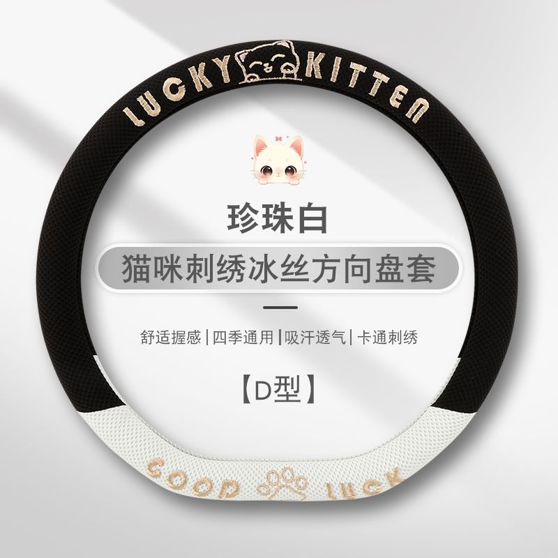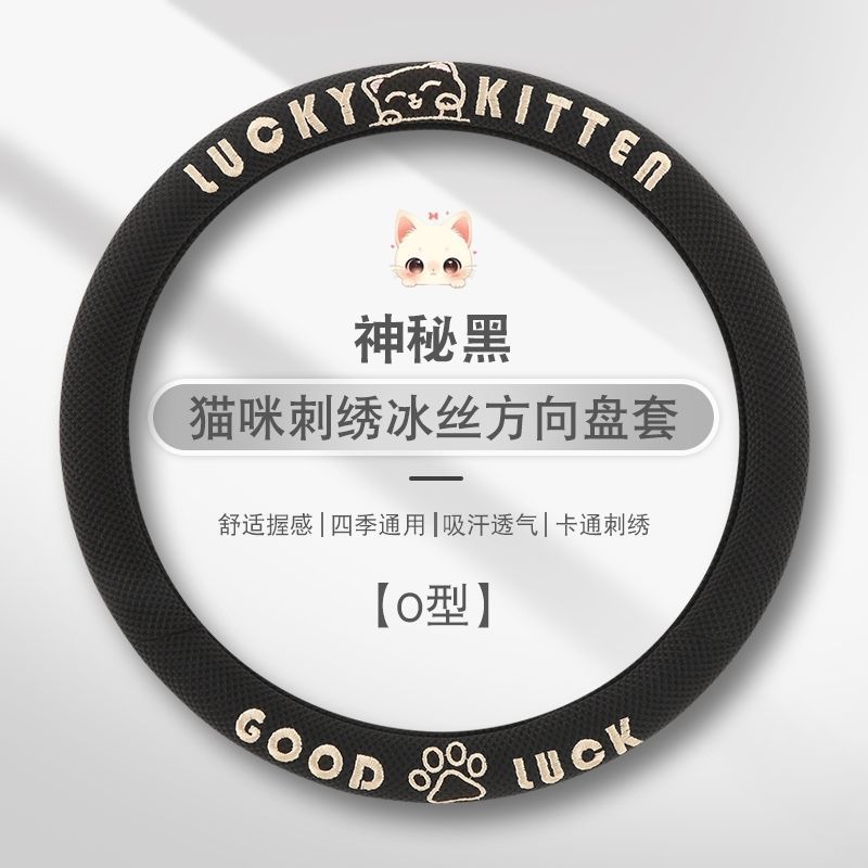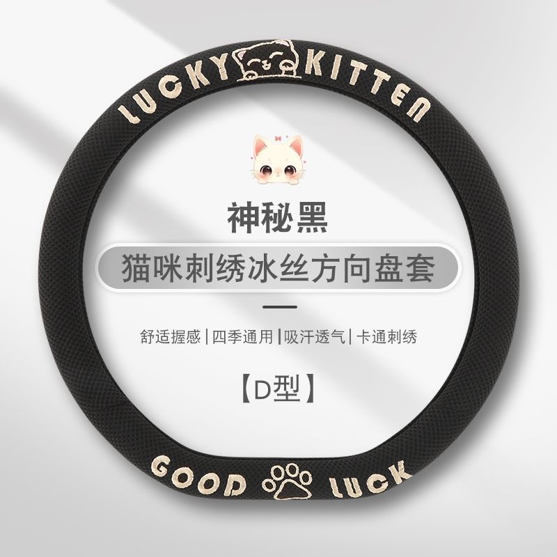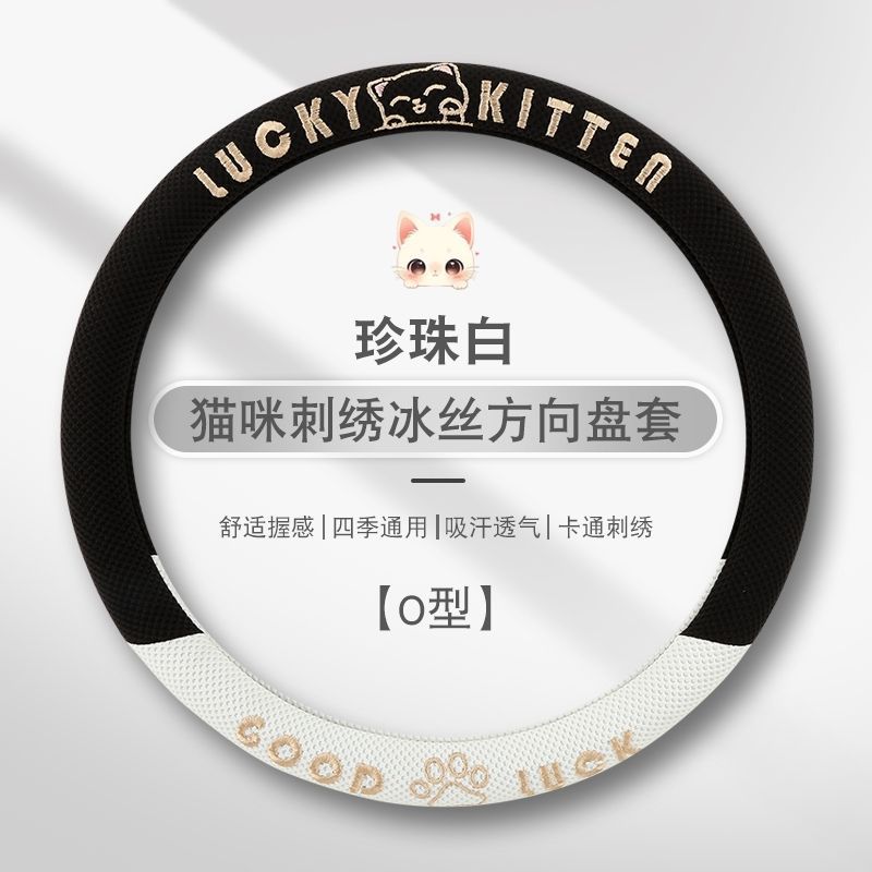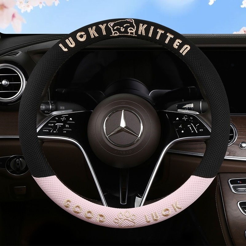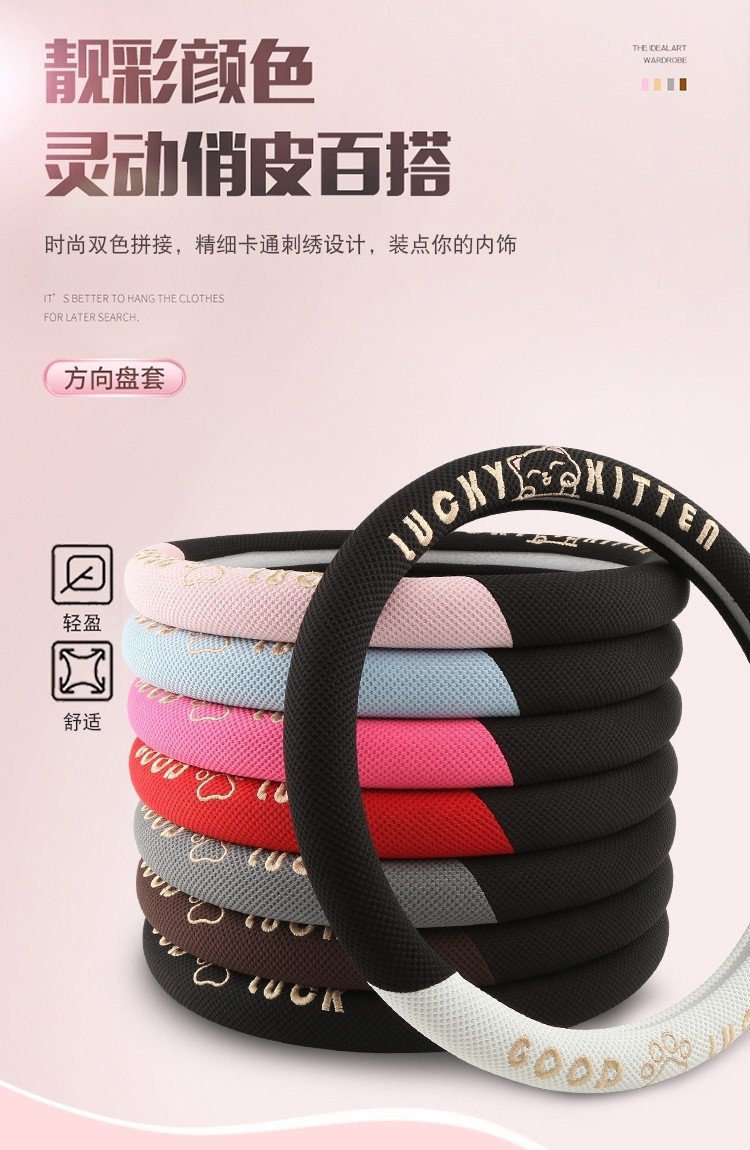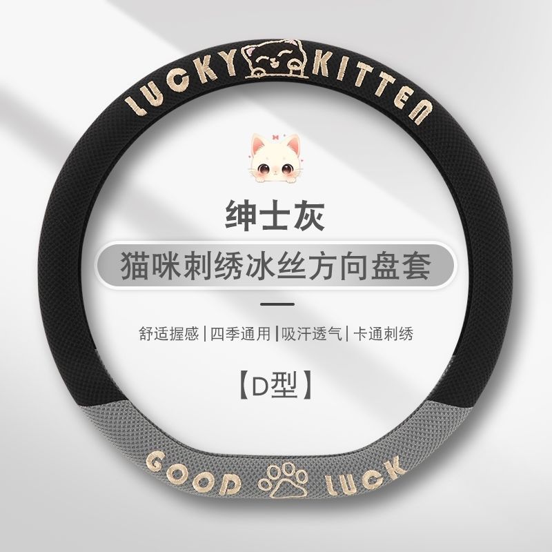 자동차 핸들 커버 사계절 사용 가능 통기성 아이스 실크 핸들 커버 여름용 만화 귀여운 자동차 인테리어 액세서리 여성용 귀여운 스타일