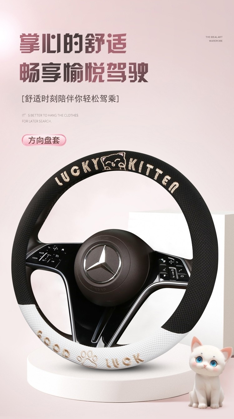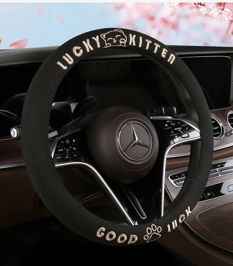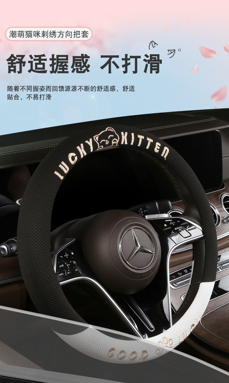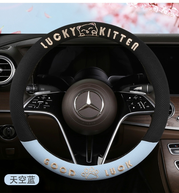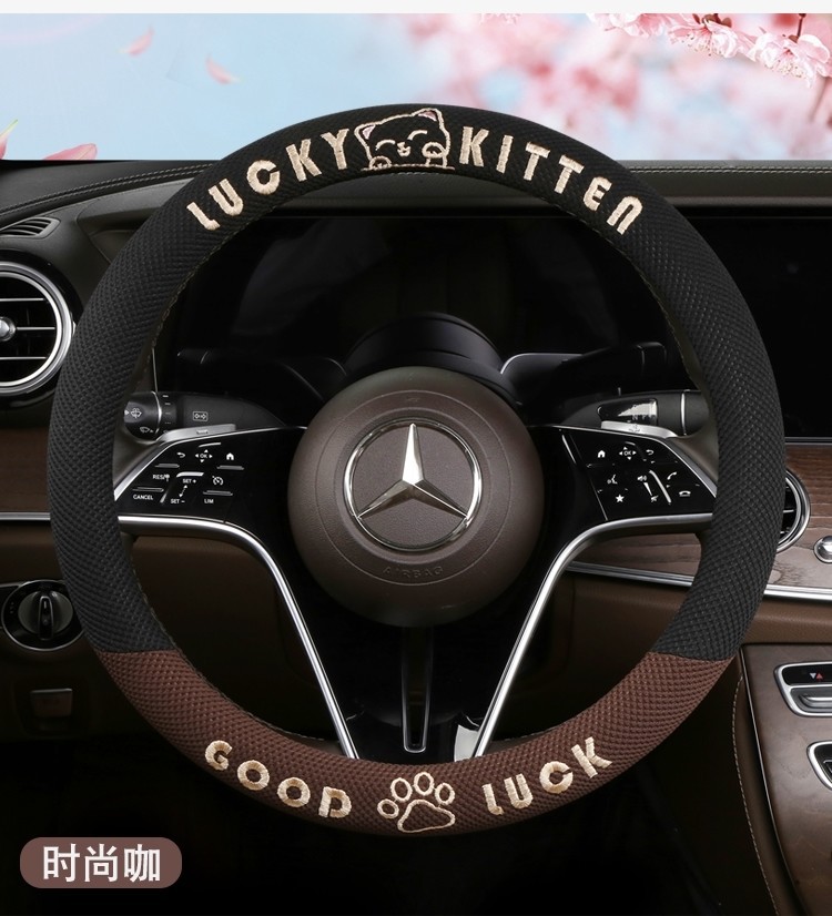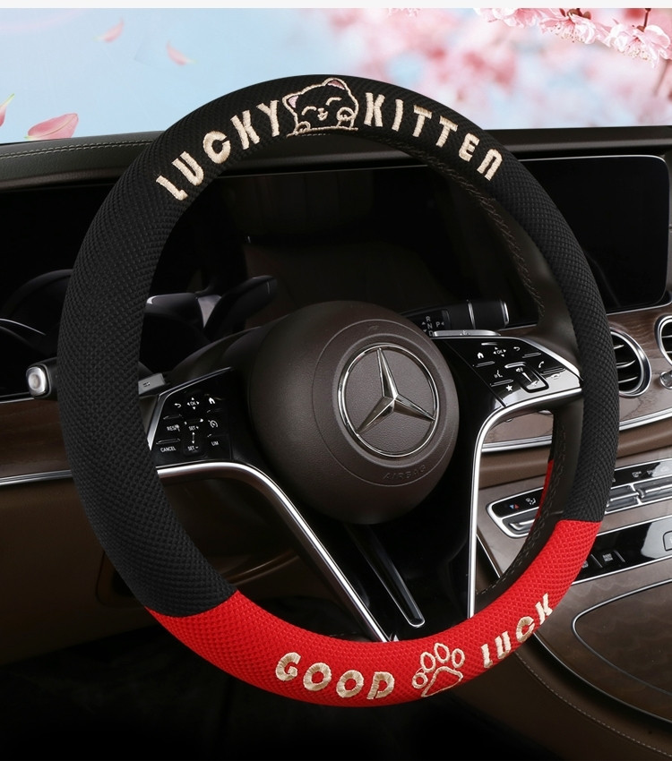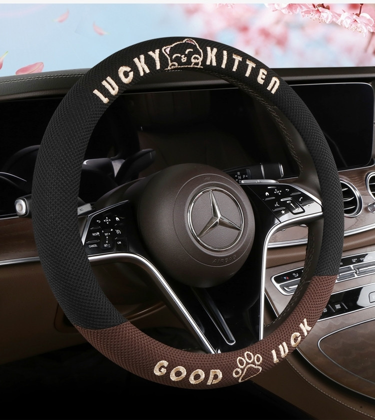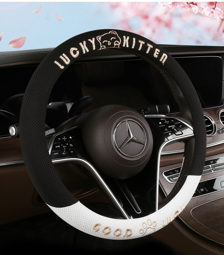 자동차 핸들 커버 사계절 사용 가능 통기성 아이스 실크 핸들 커버 여름용 만화 귀여운 자동차 인테리어 액세서리 여성용 귀여운 스타일