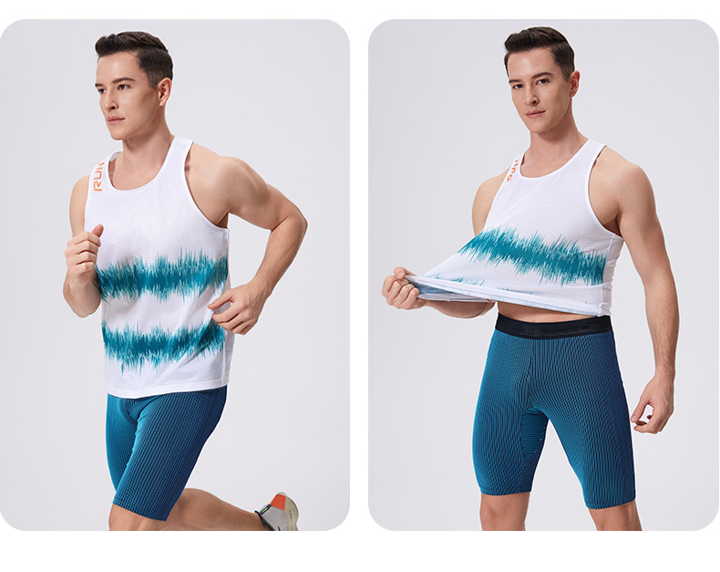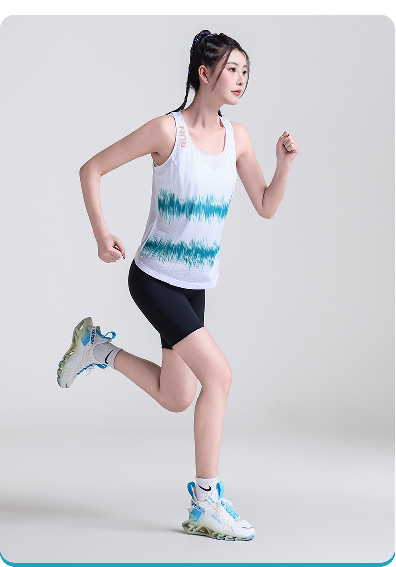 남성용 및 여성용 속건성 러닝 조끼, 가볍고 통기성이 뛰어난 마라톤 육상 경기복, 로고가 인쇄된 민소매 티셔츠스토어 가기