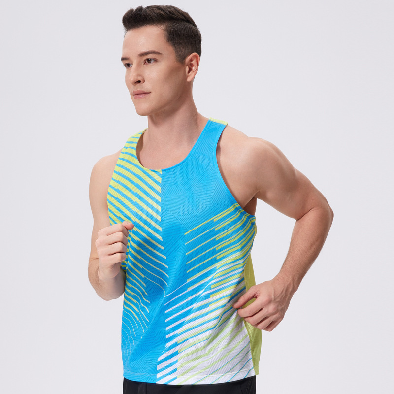 남성용 및 여성용 속건성 러닝 조끼, 가볍고 통기성이 뛰어난 마라톤 육상 경기복, 로고가 인쇄된 민소매 티셔츠