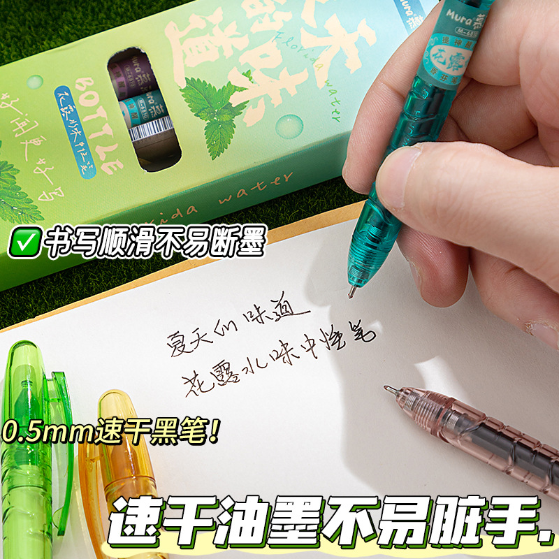 뮬 프레스 젤 펜 화장실 물 맛 창조적 인 아로마 테라피 리필 학생 빠른 건조 브러시 펜 0.5 블랙 리필