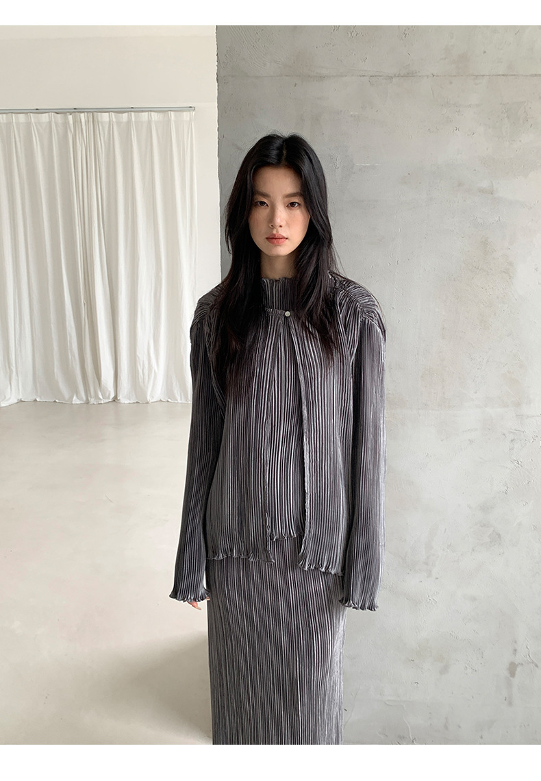 사랑과 낸시 13 라인 2025 Xia Han Feng Fold 순수한 욕망 주름진 디자인 선 스크린 셔츠 여성 11744