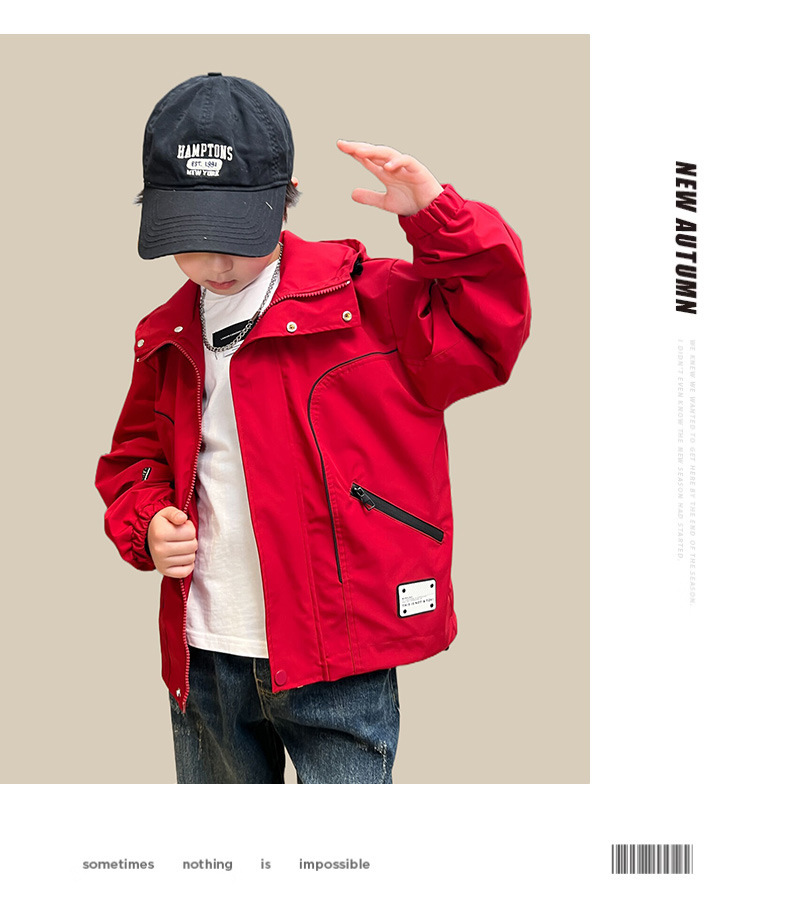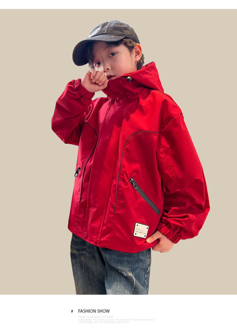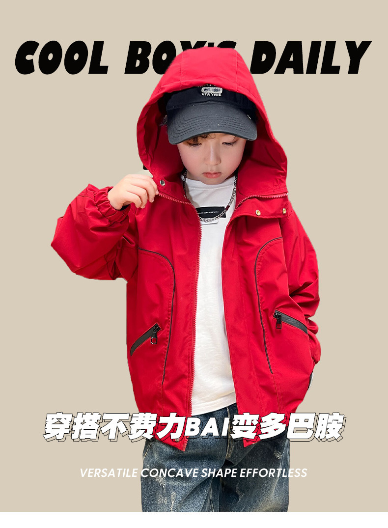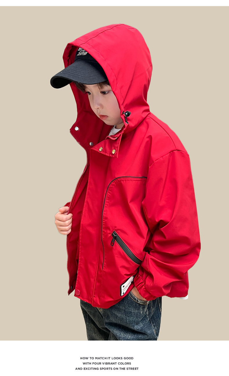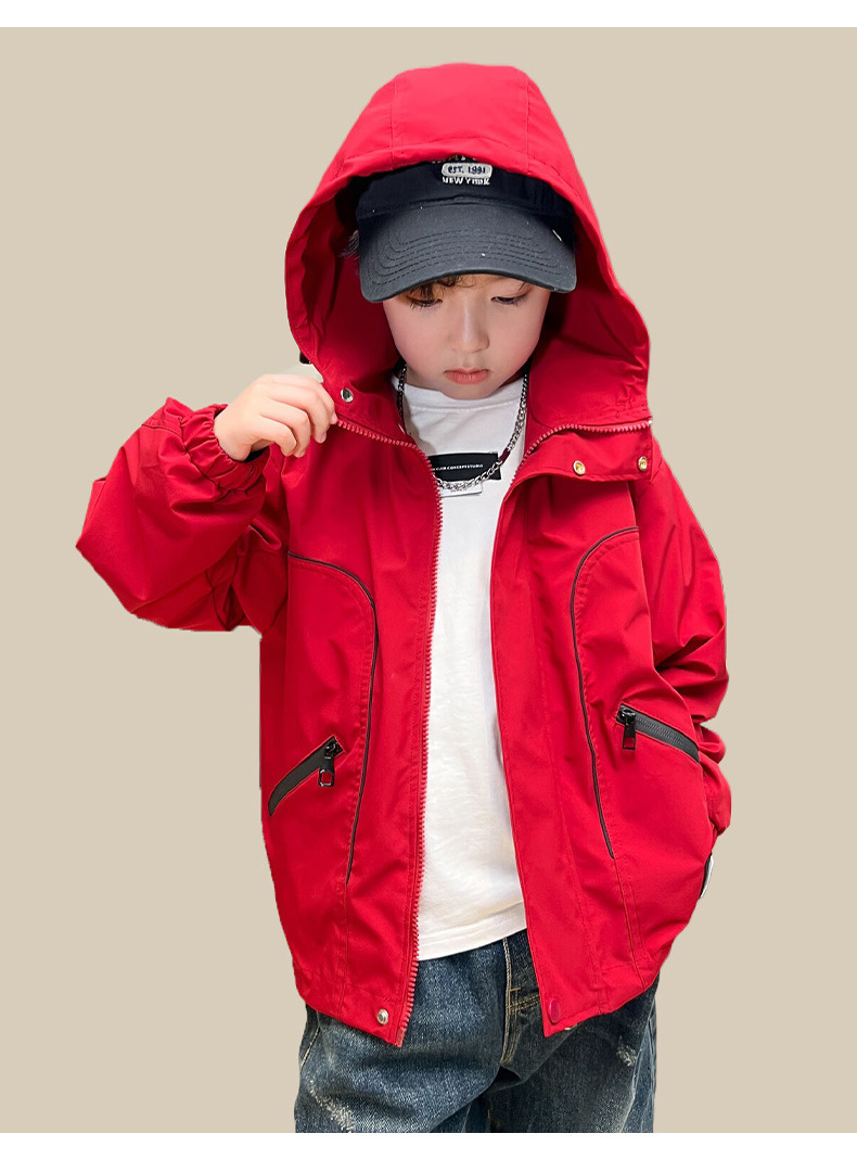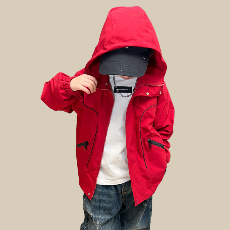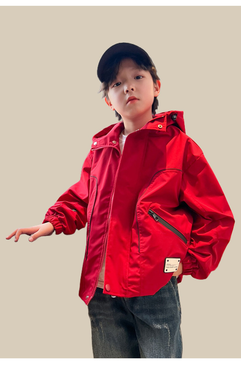 남아 가을 레드 재킷 2025 신상 아동용 재킷 신상 가을 스타일 중대형 아동 가을 바람막이 멋있고 트렌디함스토어 가기