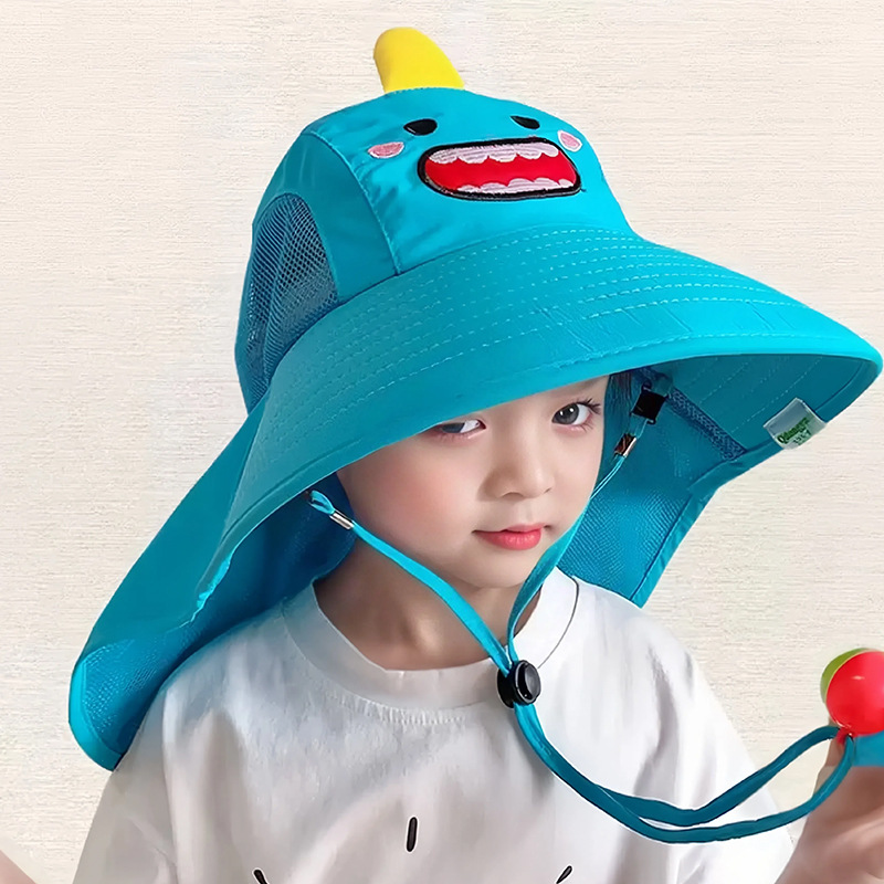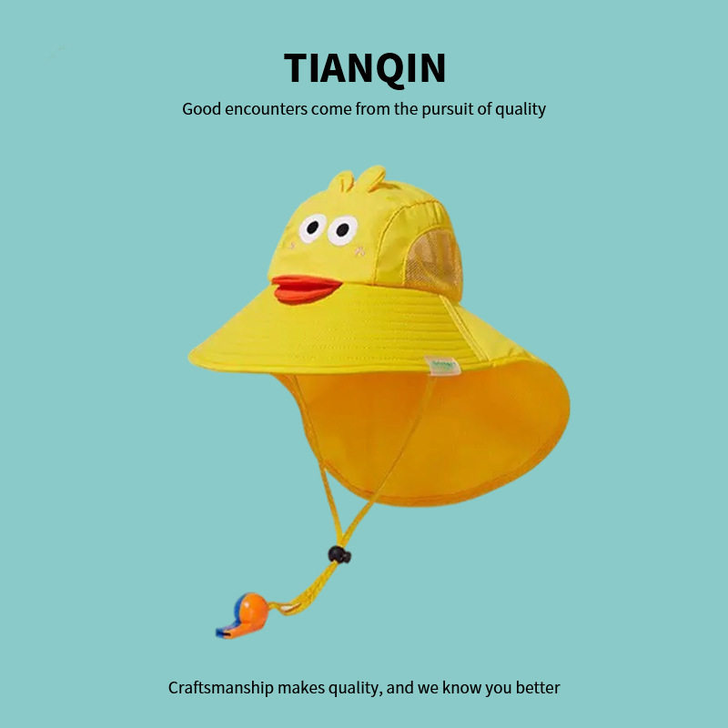 어린이 태양 보호 목도리 모자 여름 자외선 방지 여행 통기성 귀여운 만화 작은 노란색 오리 상어 어부 모자스토어 가기