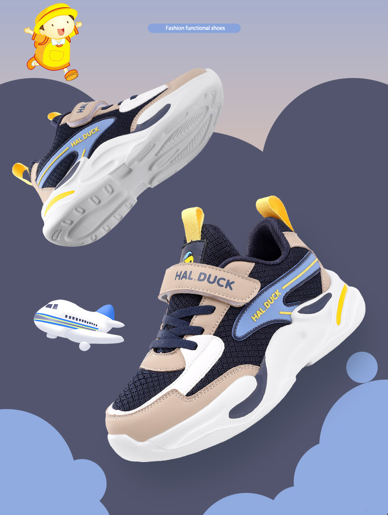 작은 노란 오리 소년 신발 2025년 신상 봄 가을 통기성 메쉬 경량 운동화 중대형 어린이 러닝화