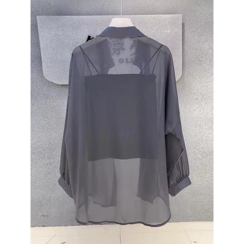 선스크린 의류 여성의 여름 아이스 실크 통기성 UV 보호 카디건 재킷 2024 새로운 긴 소매 얇은 쉬폰 셔츠