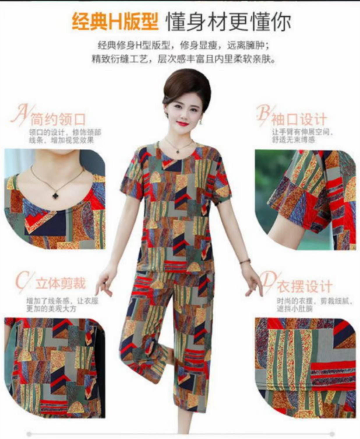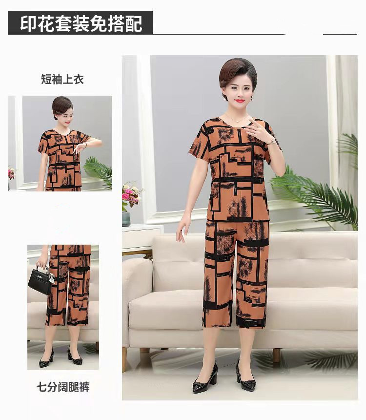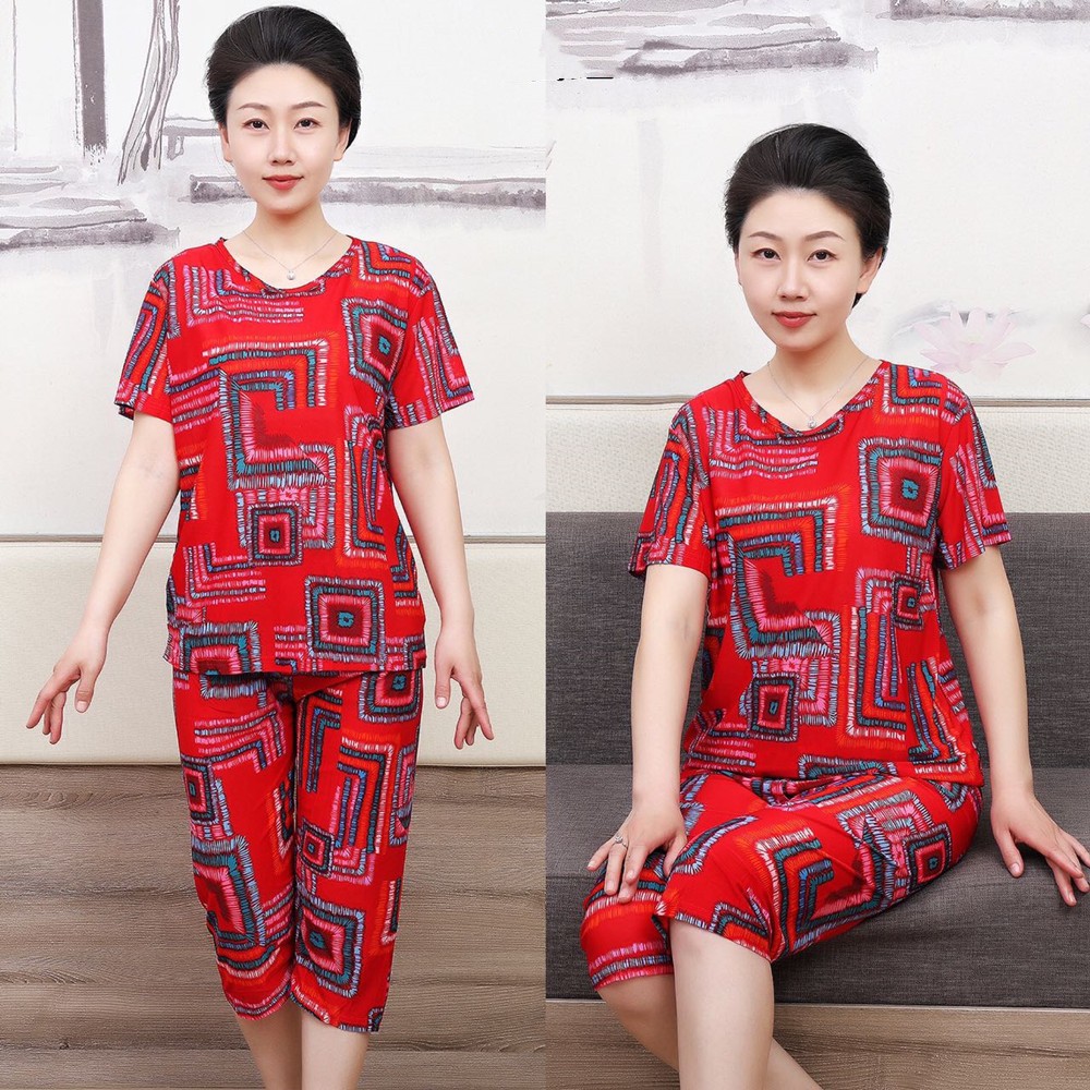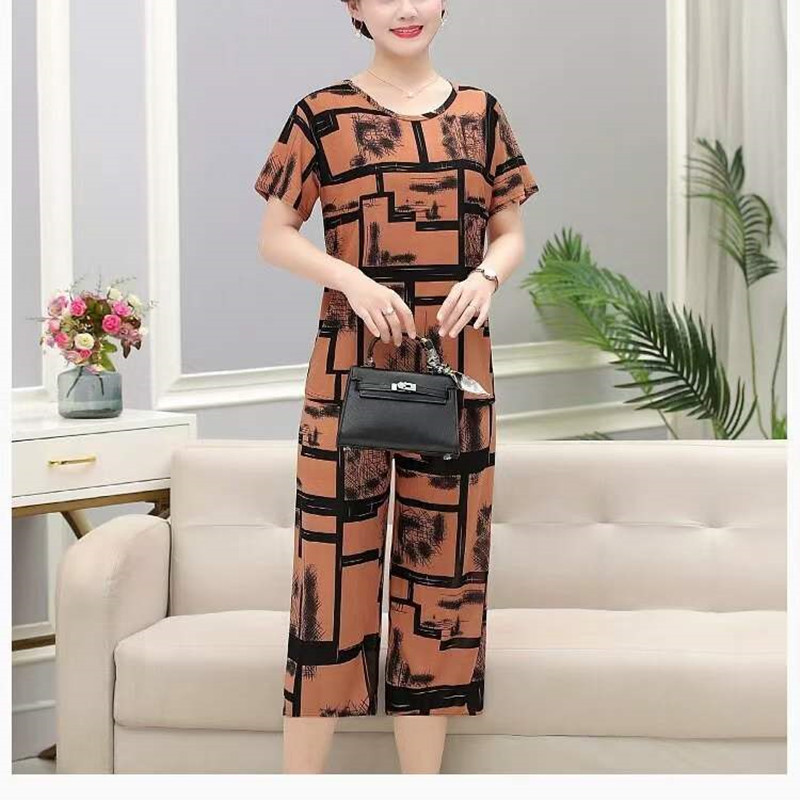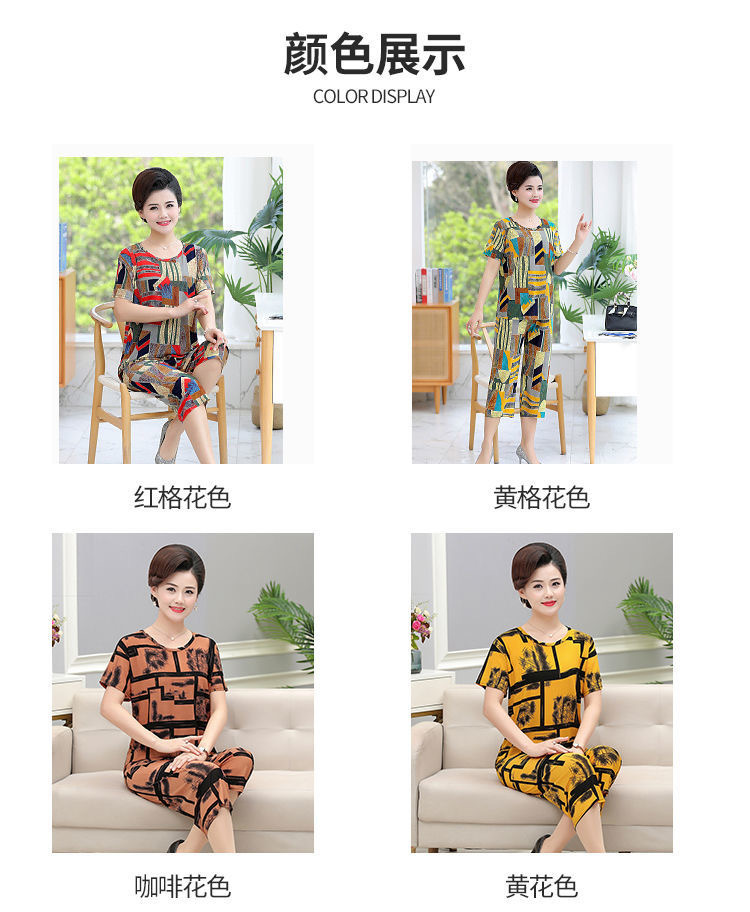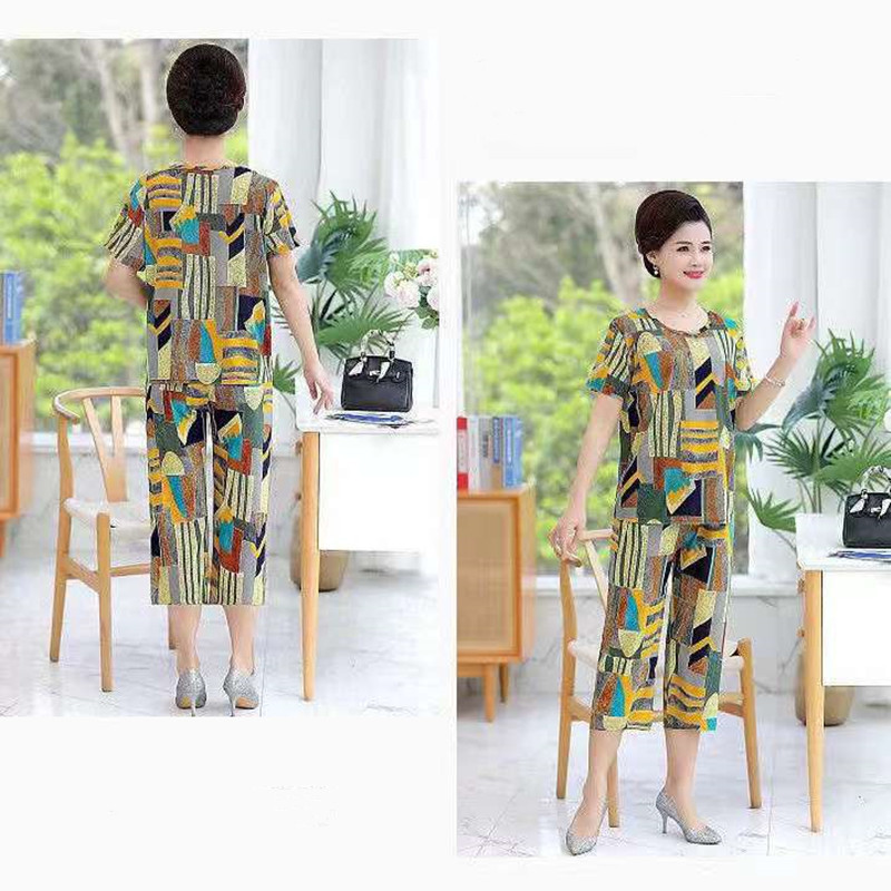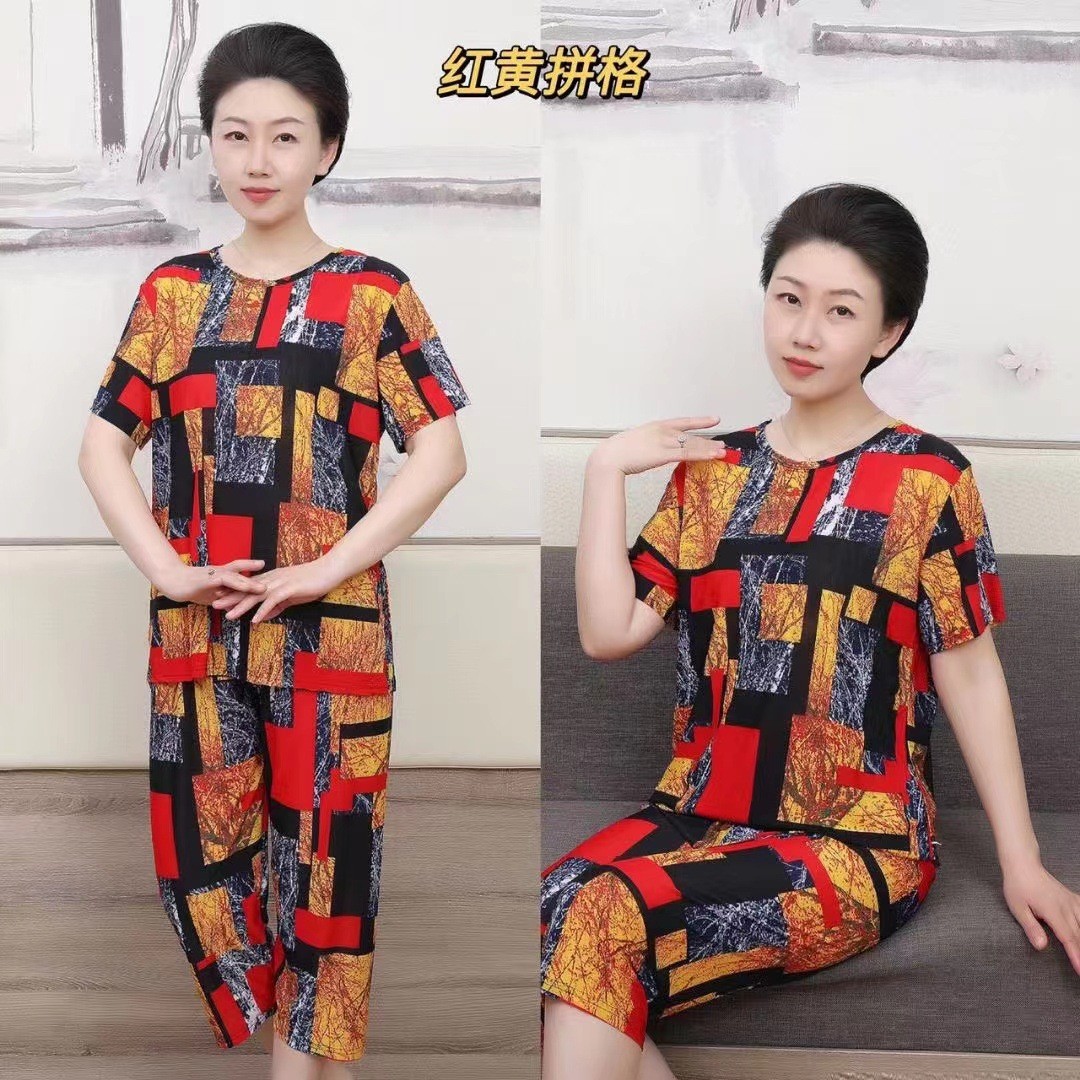 야시장 정체 폭발 여름 중년 노인 아이스 실크 어머니 할머니 잠옷 집 옷 느슨한 캐주얼 투피스 세트