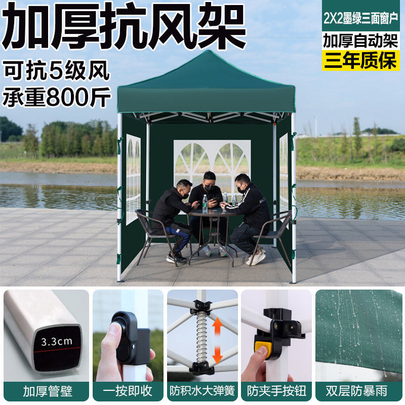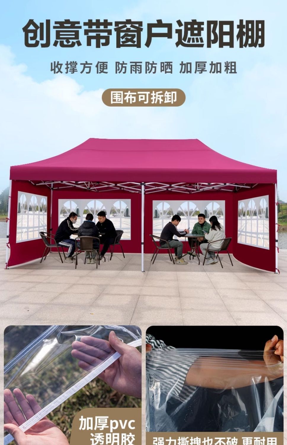 텐트 천막, 야외 방수 차양, 4개의 발을 가진 스톨 차양, 4개의 두꺼운 모서리 차양, 접이식 투명 차양스토어 가기