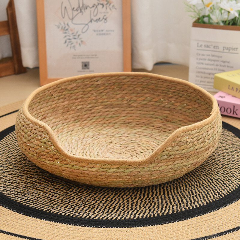 사계절 모두 사용 가능한 국경 간 인기 고양이 둥지, 고양이 스크래치 보드, 애완 동물 둥지, 등나무로 짠 탈부착 및 세척 가능한 밀짚 애완 동물 고양이 용품스토어 가기