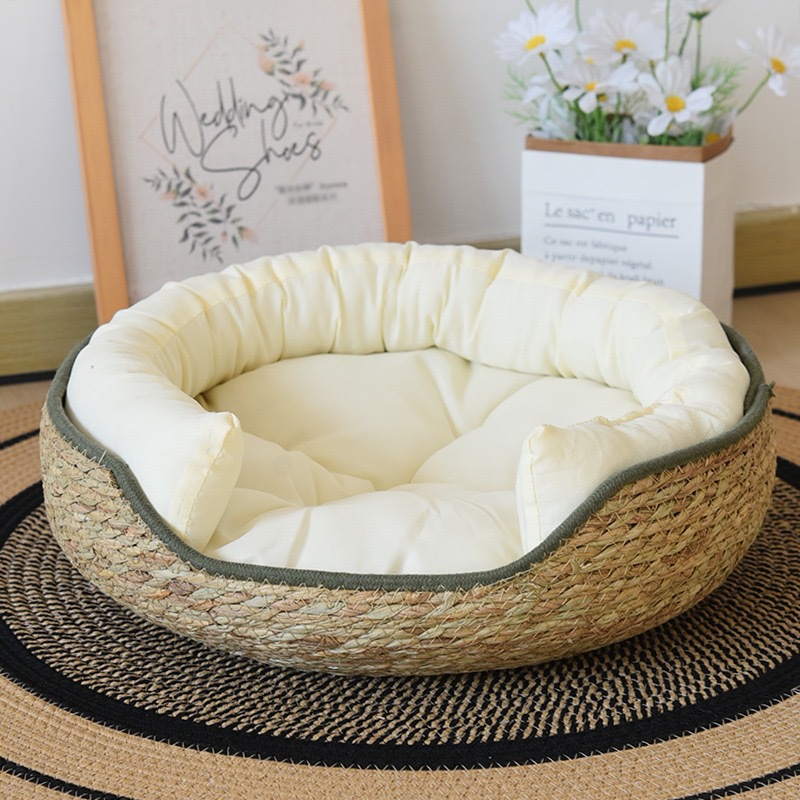 사계절 모두 사용 가능한 국경 간 인기 고양이 둥지, 고양이 스크래치 보드, 애완 동물 둥지, 등나무로 짠 탈부착 및 세척 가능한 밀짚 애완 동물 고양이 용품