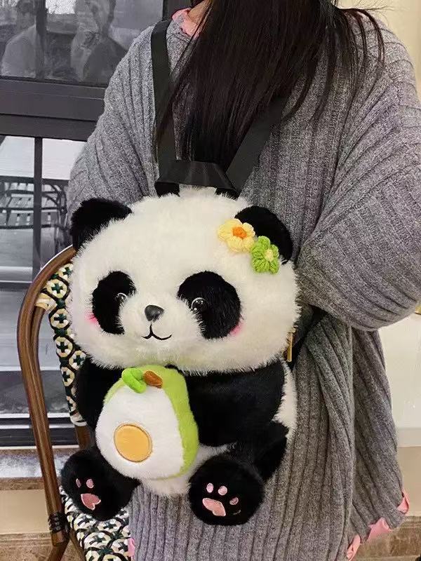 부드럽고 귀여운 스타일 귀여운 꽃 팬더 포옹 아보카도 사과 인형 플러시 배낭 다용도 jk 배낭스토어 가기