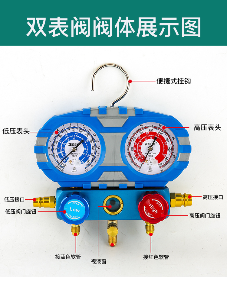 Zeng의 자동차 홈 에어컨 냉매 더블 시계 에어컨 냉장고 불소로 가득 찬 스노우 프레온 도구 세트스토어 가기
