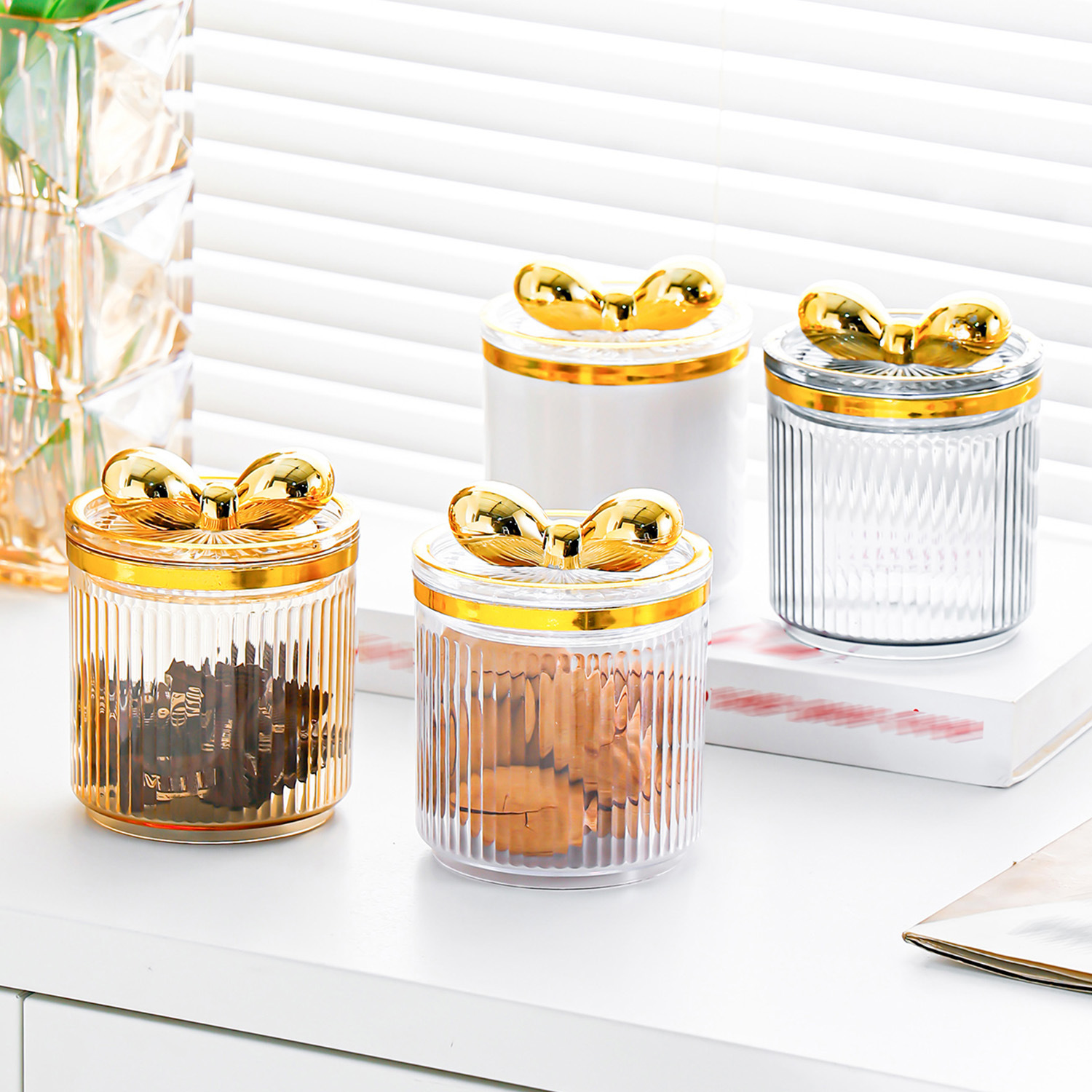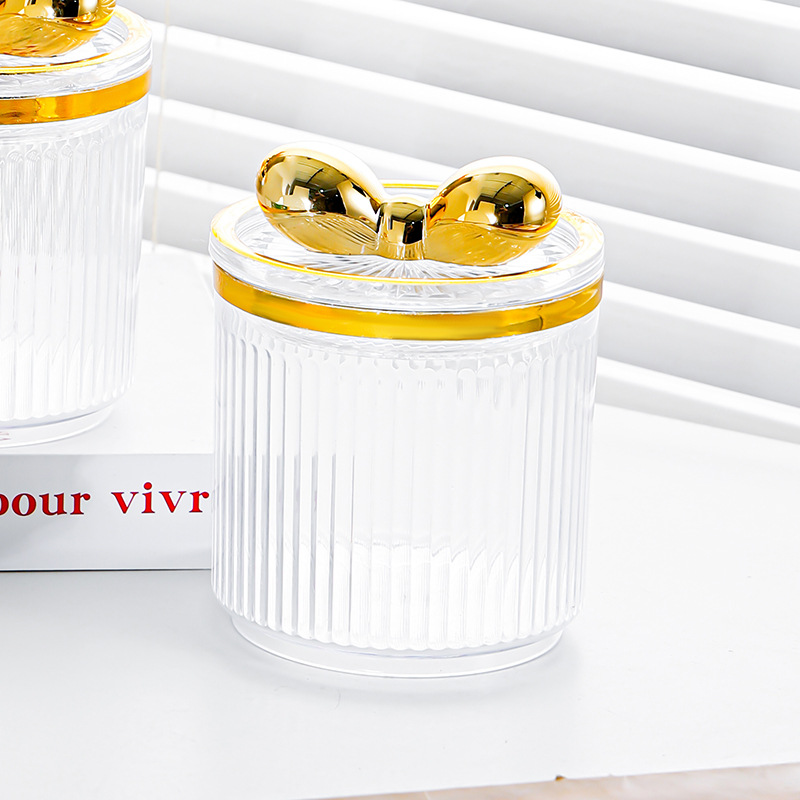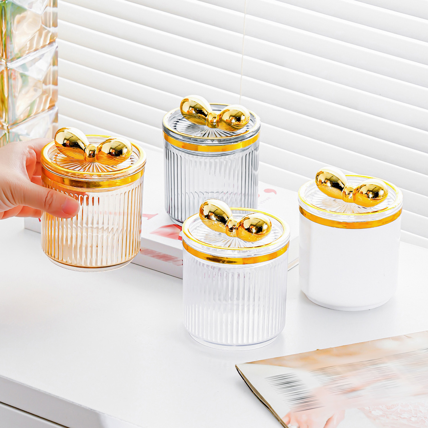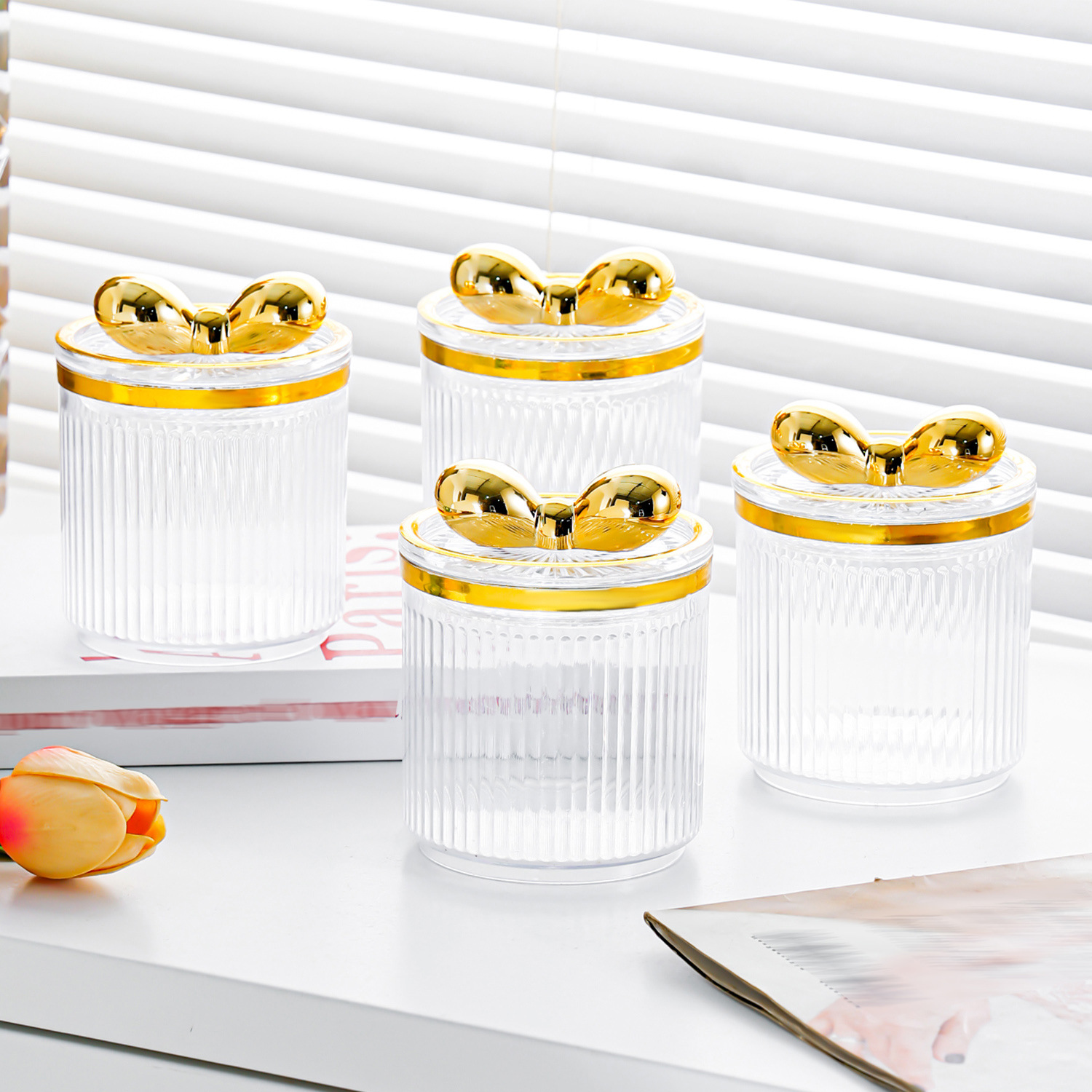 • 금테 리본이 달린 투명 원형 밀봉 항아리, 2팩