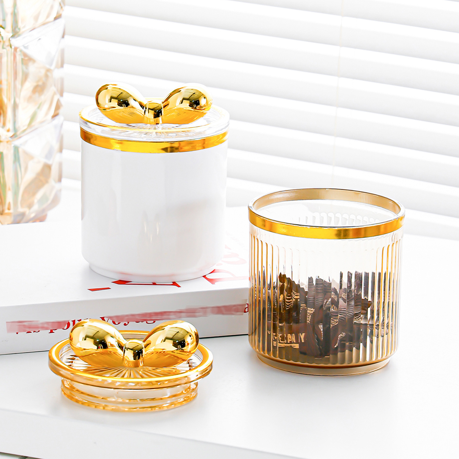 • 금테 리본이 달린 흰색 도자기 원형 밀봉 항아리 2팩