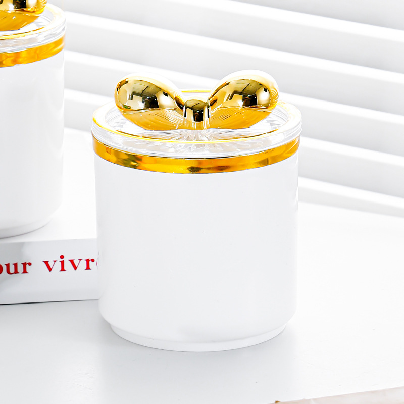 • 금테 리본이 달린 흰색 도자기 원형 밀봉 항아리 1팩
