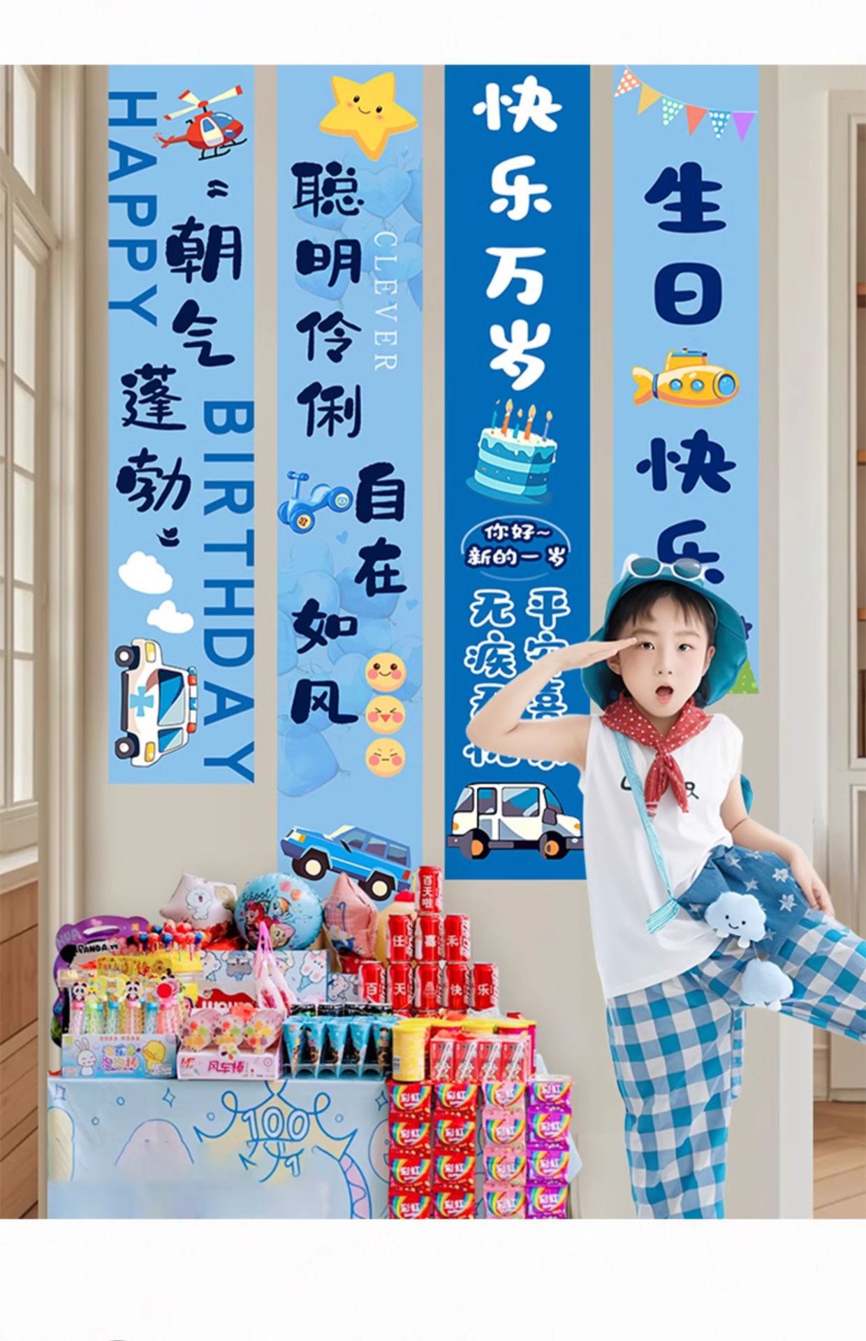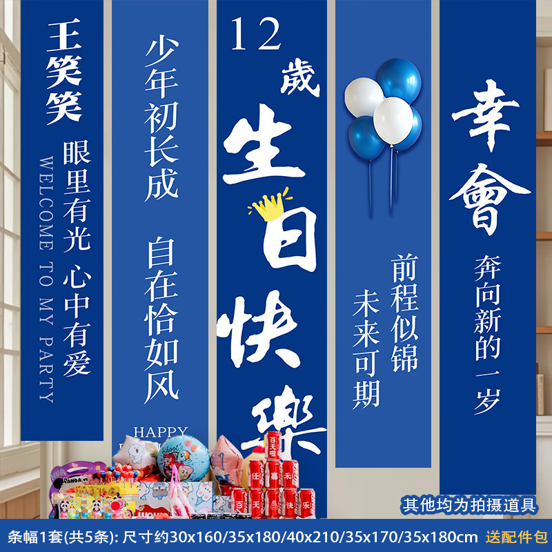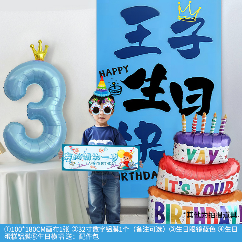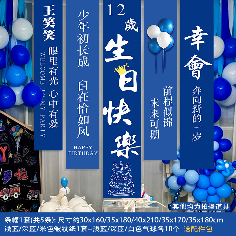 소년 생일 블루 배너 교수형 천 세트 풍선 한 살짜리 파티 행복한 배경 천 장식 장면 레이아웃스토어 가기