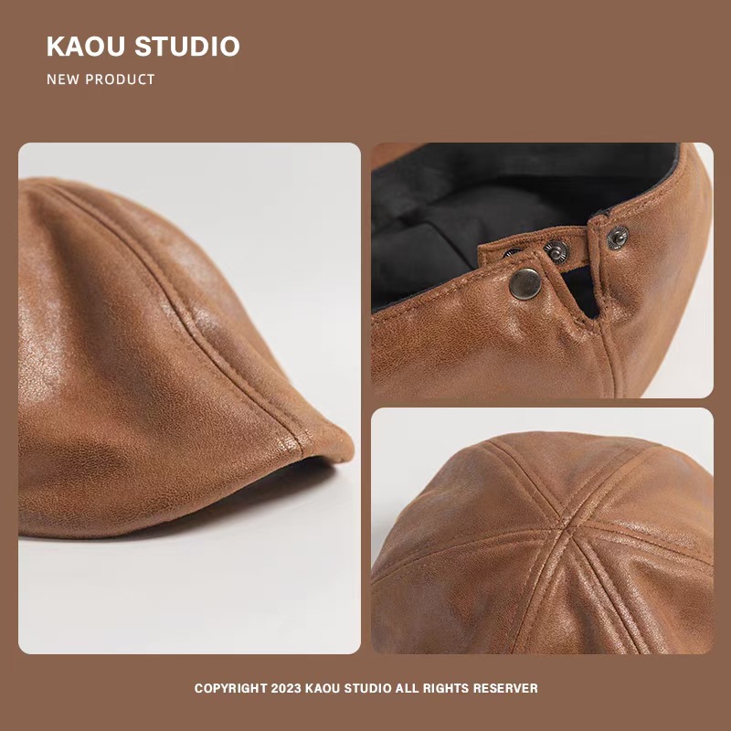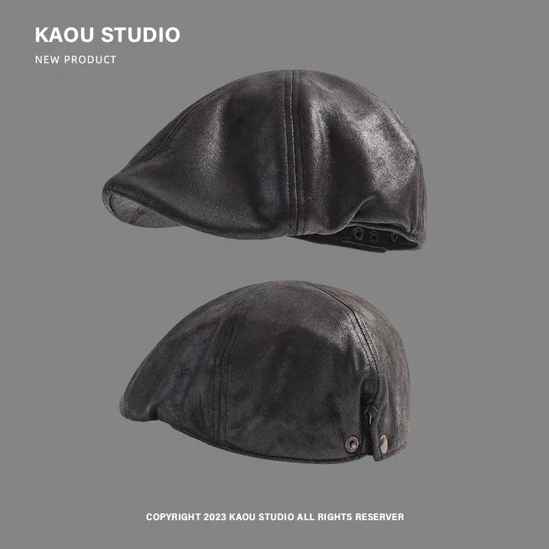 봄 여름 다용도 PU 가죽 복고풍 일본식 발수 프론트 캡 타이 염색 예술적 피크 캡 틈새 영국 베레모스토어 가기