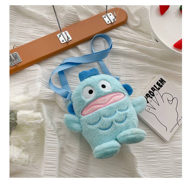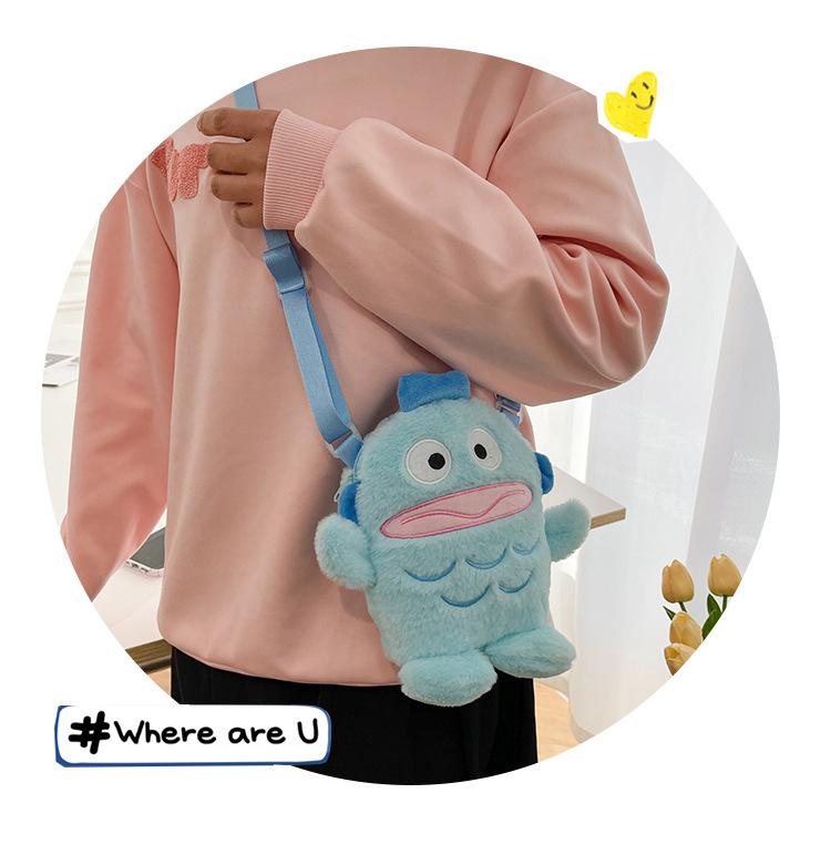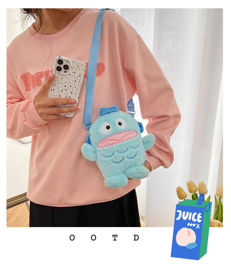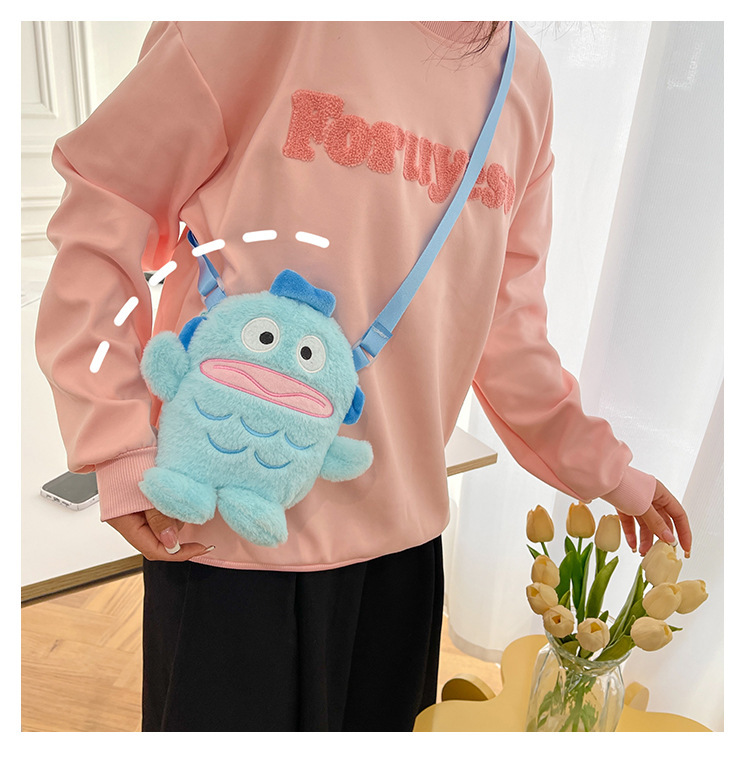 만화 추악한 물고기 재미 있은 Crossbody 가방 2025 새로운 플러시 휴대 전화 가방 모피 맞춤형 작은 가방 어린이 선물스토어 가기
