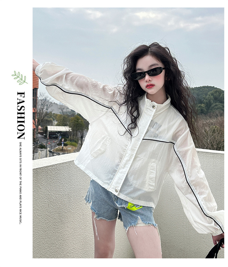 품질 원래 도매 소녀 2025 여름 중간과 큰 아이 새로운 얇은 칼라 캐주얼 스포츠 태양 보호 의류스토어 가기