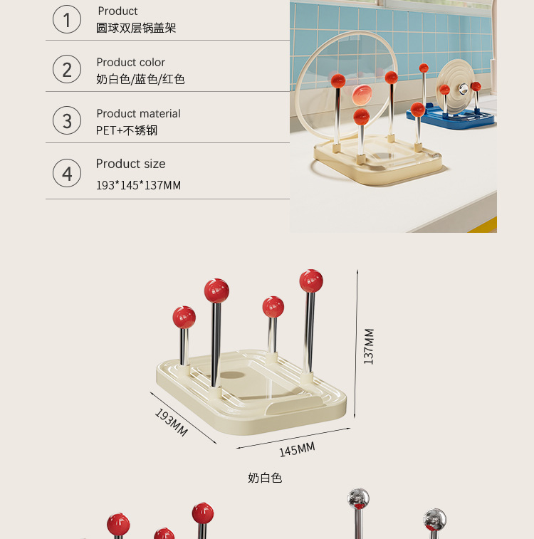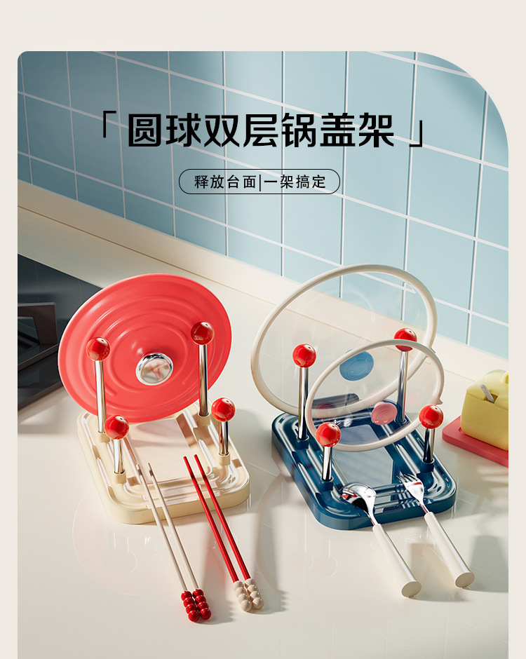 도파민 이중 레이어 냄비 뚜껑 랙 주방 다기능 조리대 보관 랙 주걱 냄비 뚜껑 젓가락 보관 유물