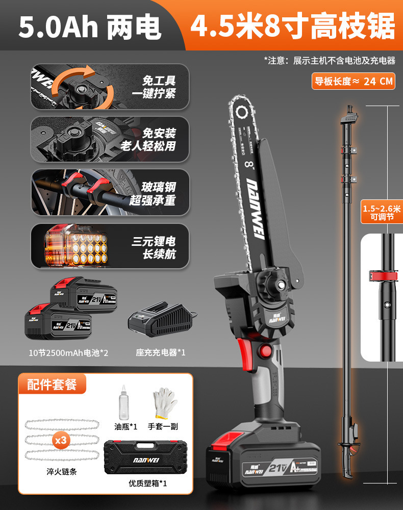 • 6inch 브러시리스 전기톱 5.0AH 배터리 1개 + 하이 브랜치 폴 [톱 3.3m ]