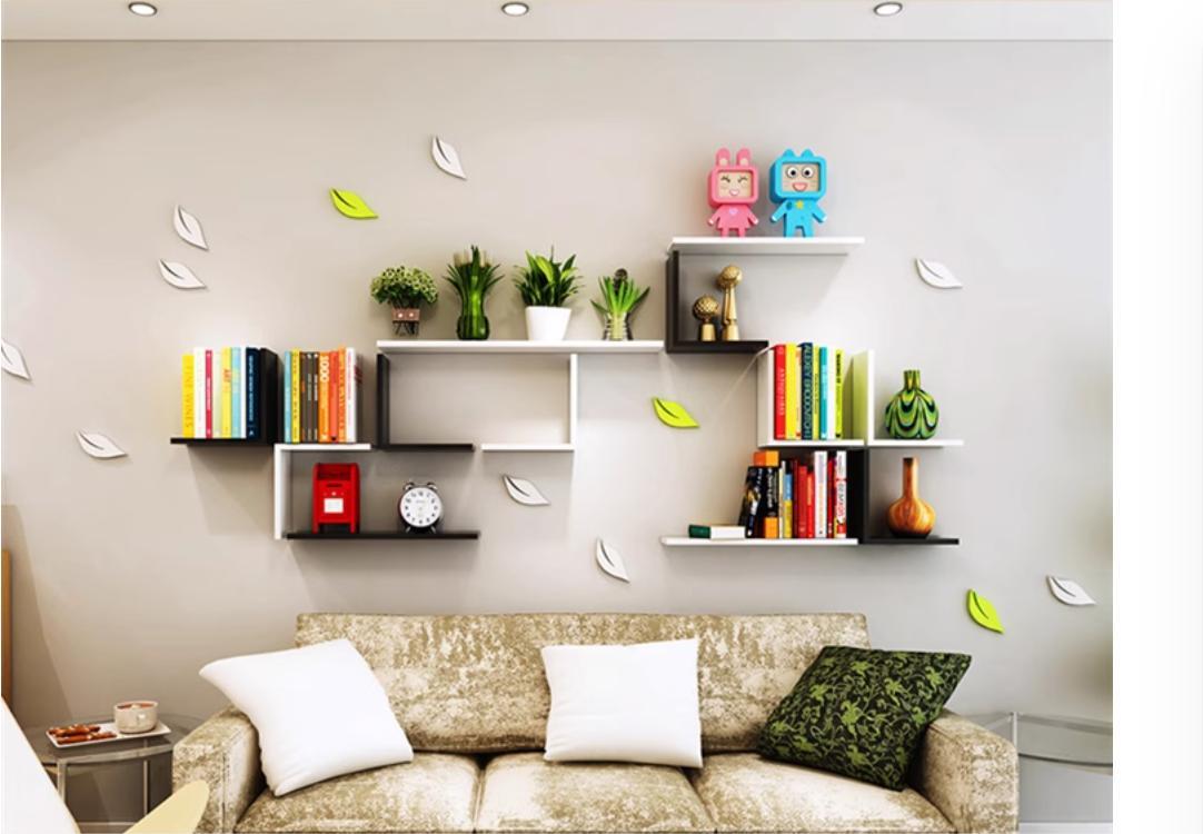 벽걸이 선반, 펀치 없는 책장, 거실 벽걸이 장식 선반, 침실 창의적인 벽 TV 배경스토어 가기