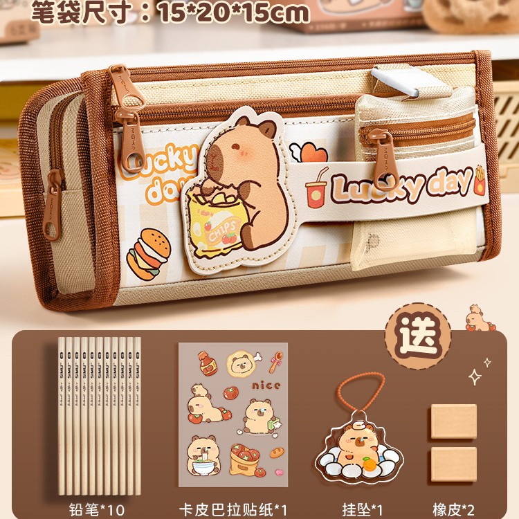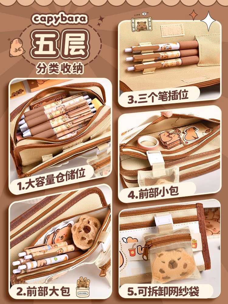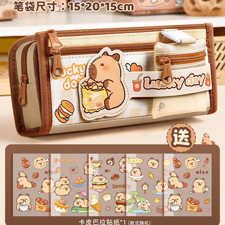 카피 바라 연필 케이스 2024 새로운 스타일 초등학교 소녀의 높은 색상 가치 대용량 문구 케이스 소녀의 중학생