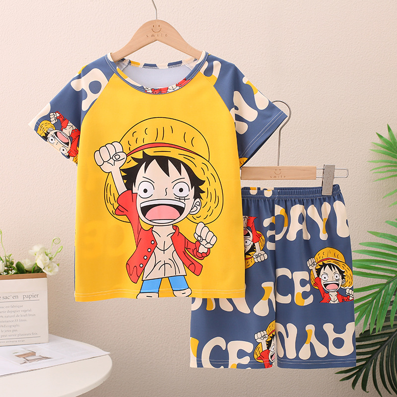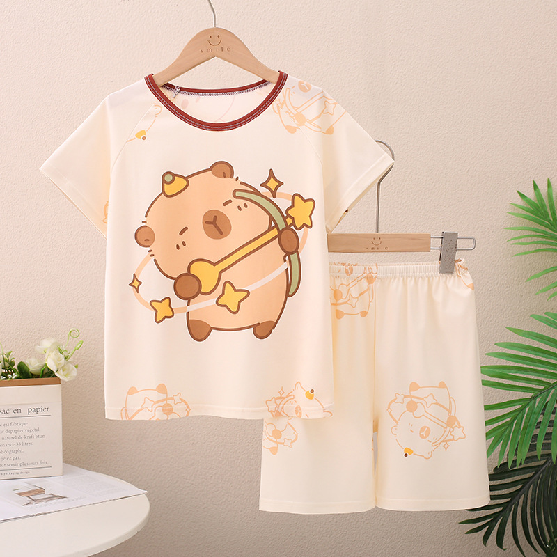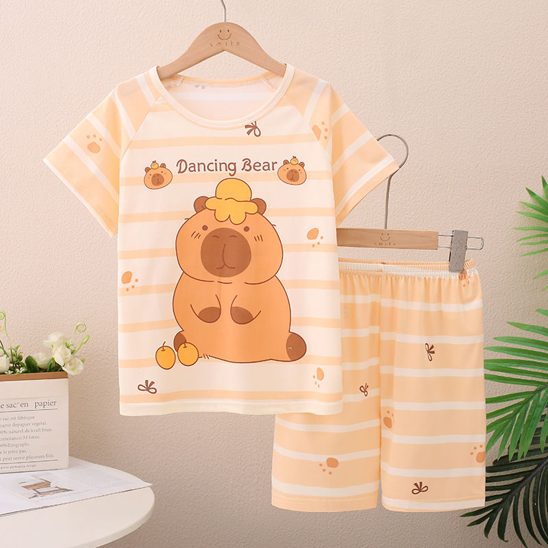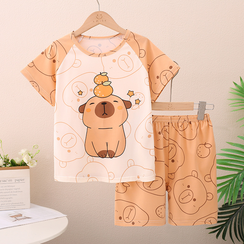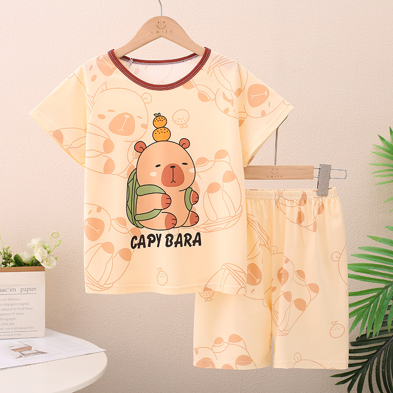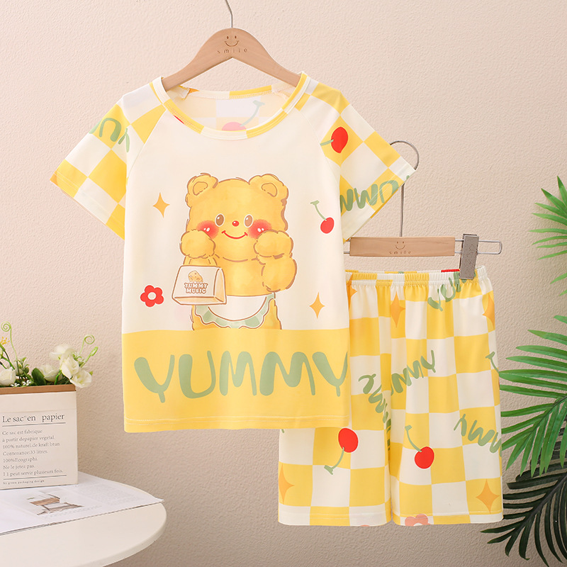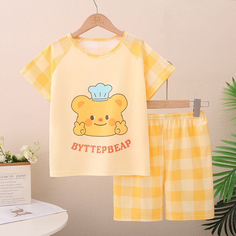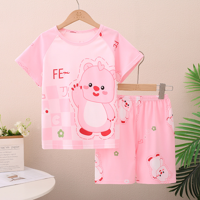 남아 및 여아용 신상 여름 아동 잠옷, 반팔 반바지, 에어컨 의류, 투피스 세트, 남아 및 여아 가정복, 트렌디스토어 가기