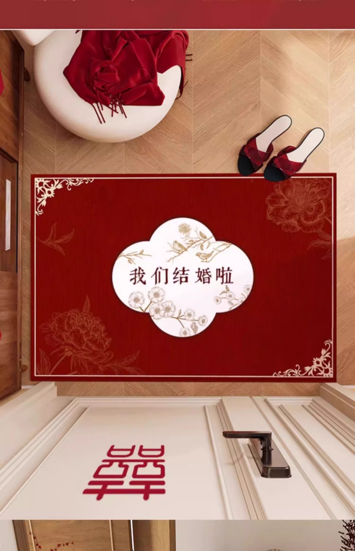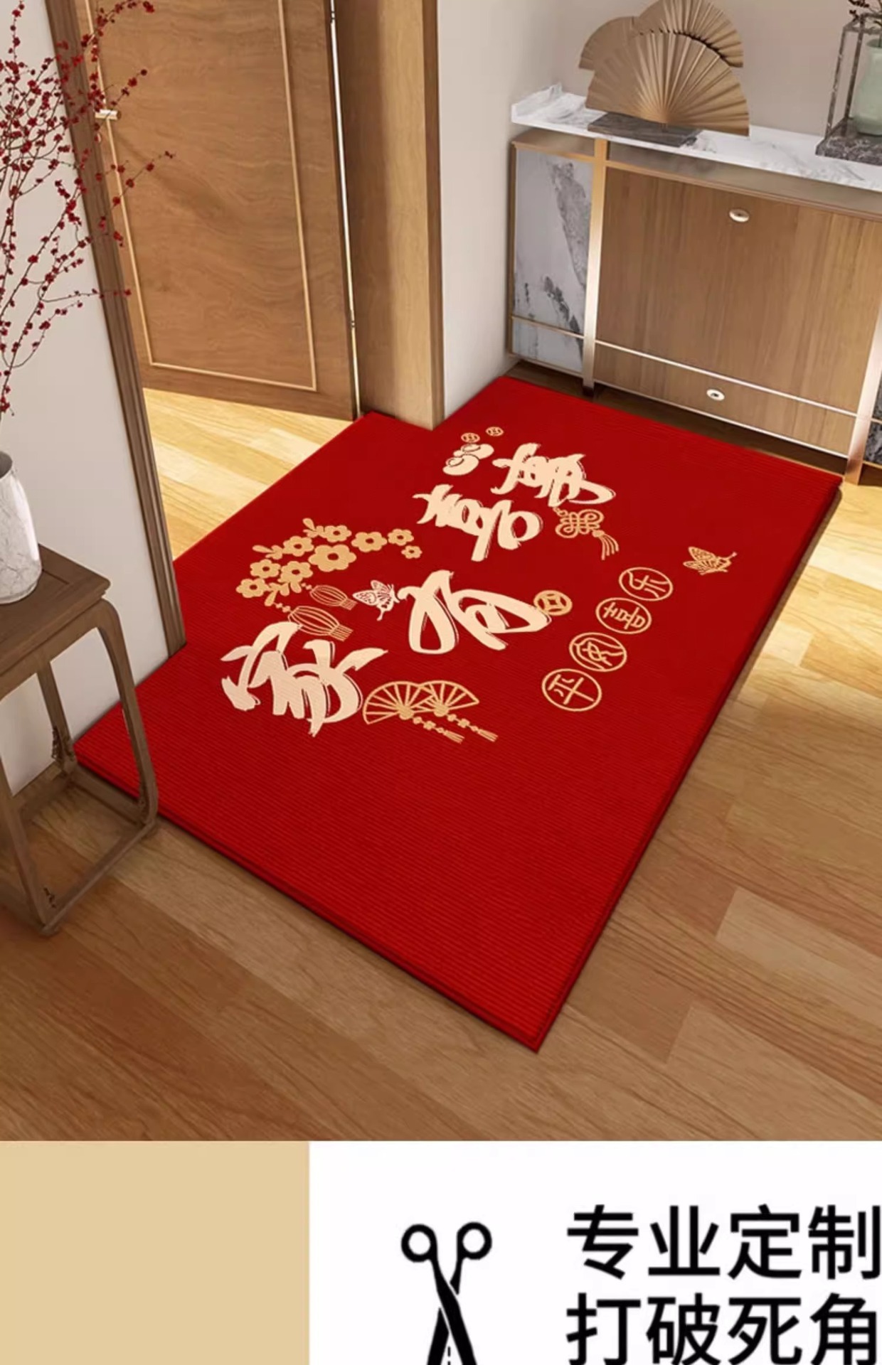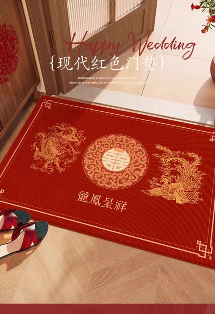 해피 단어 웨딩 플로어 매트 축제 입구 문 새로운 중국 레드 웨딩 룸 입구 문 매트 침실 카펫