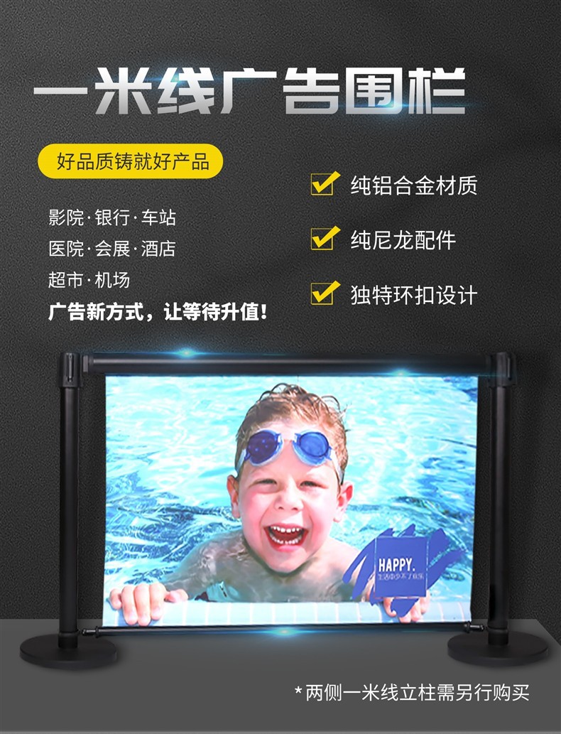 1.0m 라인 난간 격리 벨트 디스플레이 공항 야외 안전 대기 줄 울타리 가드 레일 생산 이벤트 광고 울타리스토어 가기