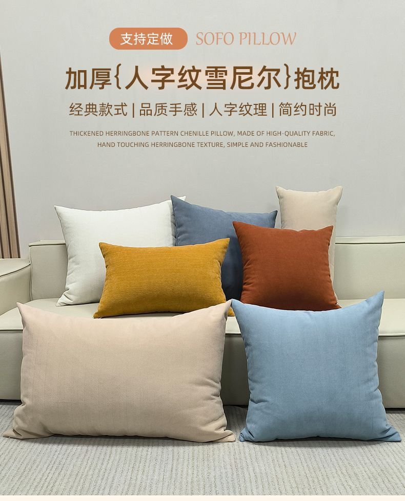 2025 롱 크림 체닐 헤링본 베개 대형 거실 소파