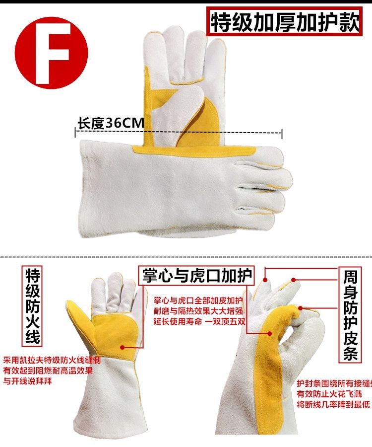 용접 동물 용접 장갑, 용접공 장갑, 용접 단열, 내마모성 소가죽, 고온 방지, 화상 방지, 부드러운 노동 보호 및 방화선스토어 가기