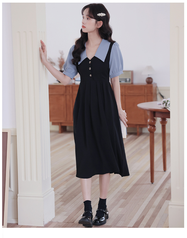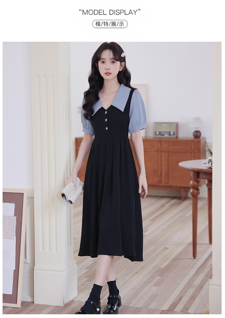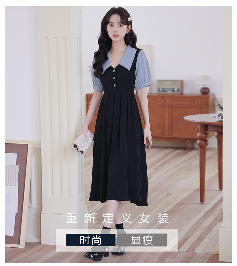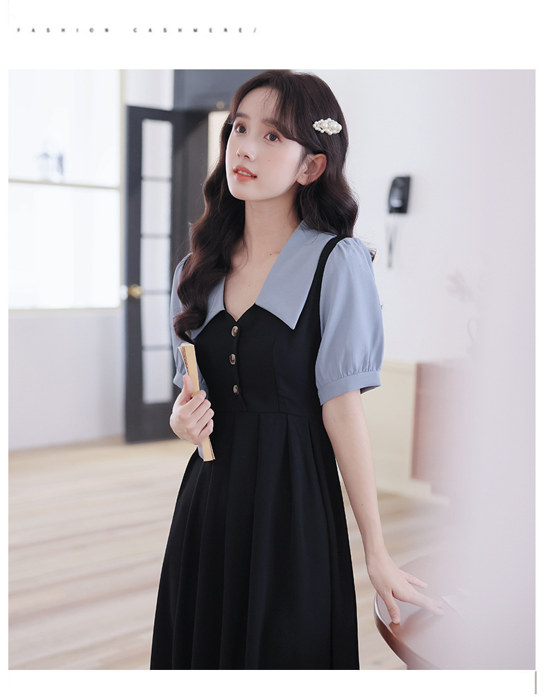 UGC 인터뷰 공식적인 원피스 여자 2025 년 여름 새로운 프랑스 기질 반팔 가짜 투피스 스커트스토어 가기