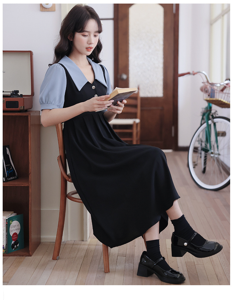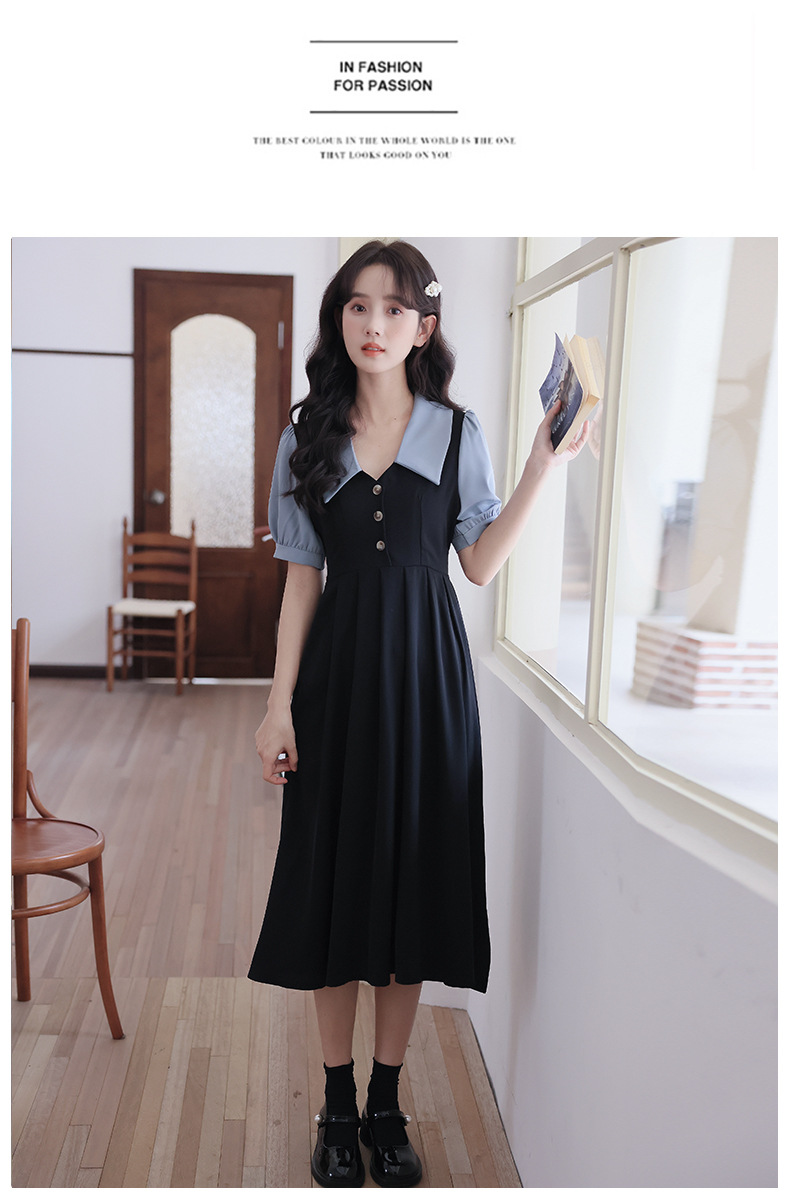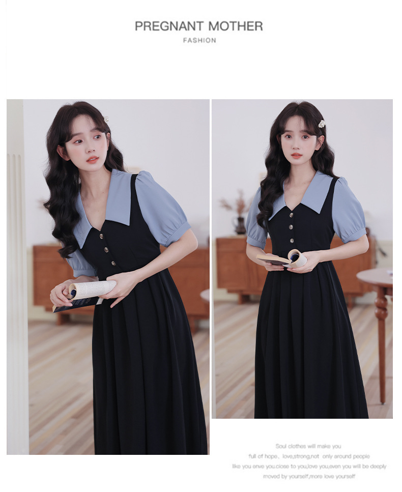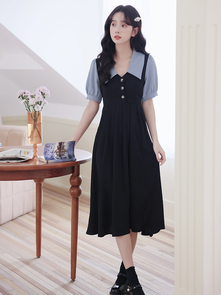 UGC 인터뷰 공식적인 원피스 여자 2025 년 여름 새로운 프랑스 기질 반팔 가짜 투피스 스커트스토어 가기